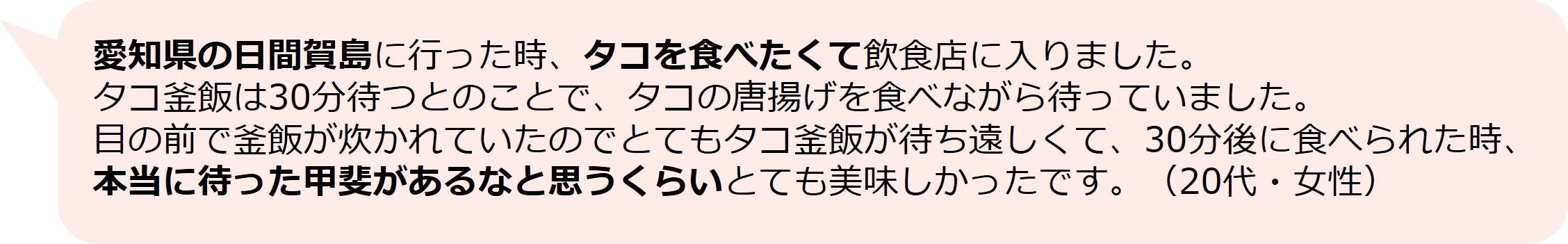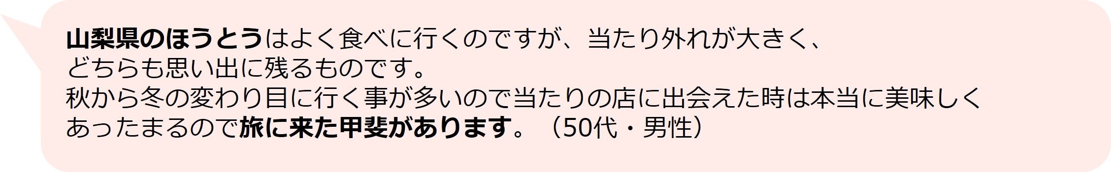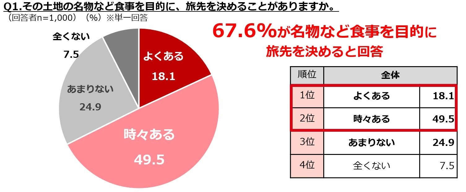 そして、旅先を決める際には「食」が重要な要素となっており、約7割の方が「その土地の名物など食事を目的に旅先を決めることがある」と回答しました。