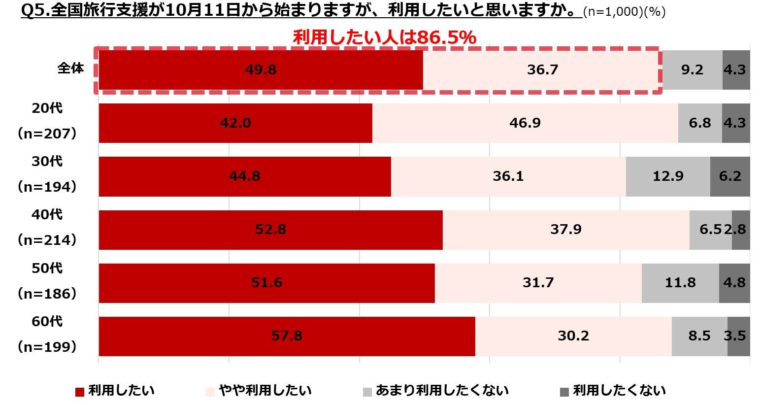 全国旅行支援を利用して、旅の計画をされている方も多いのではないでしょうか。8割超の方が「利用したい」と回答していることからも、関心が高いことが伺えます。