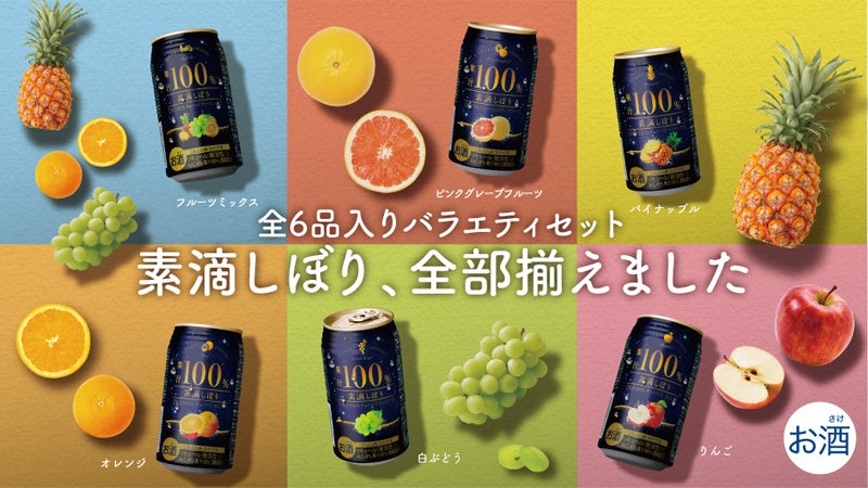富永貿易株式会社(本社:兵庫県神戸市)は、本日10月18日(火)より、「素滴しぼり果汁100%チューハイ」のピンクグレープフルーツ・パイナップル・りんご・フルーツミックス・白ぶどう・オレンジの6種類すべてのフレーバーがお楽しみいただける『素滴しぼり果汁100%チューハイ全6品入りバラエティセット』を発売します。素滴しぼりはフルーツの爽快な甘味と酸味のバランスをお楽しみいただける果汁100%の”ステキ”なチューハイです。しぼったそのままの果汁感、濃い味わいを楽しんでいただけるよう厳選果汁を100%使用しています。 搾汁したままの100%ストレート果汁を濃縮したのち、 濃縮した際に減った重量(水分)を、再び水やアルコールなどで還元しています。 果実の持つおいしさを引き出せるよう、アルコール度数は4%の低アルコール設計です。果汁100%なので食中酒としても、またリラックスシーンにもピッタリです。こちらの商品はAmazonなどでお買い求めいただけます。