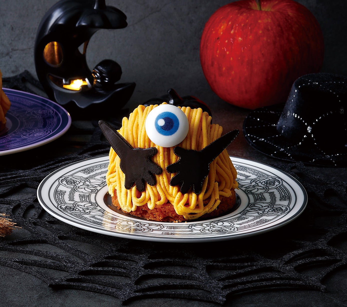優しい甘さのかぼちゃに、スイートポテトのペーストを練り込んで絞った、キュートなモンスターモンブラン!