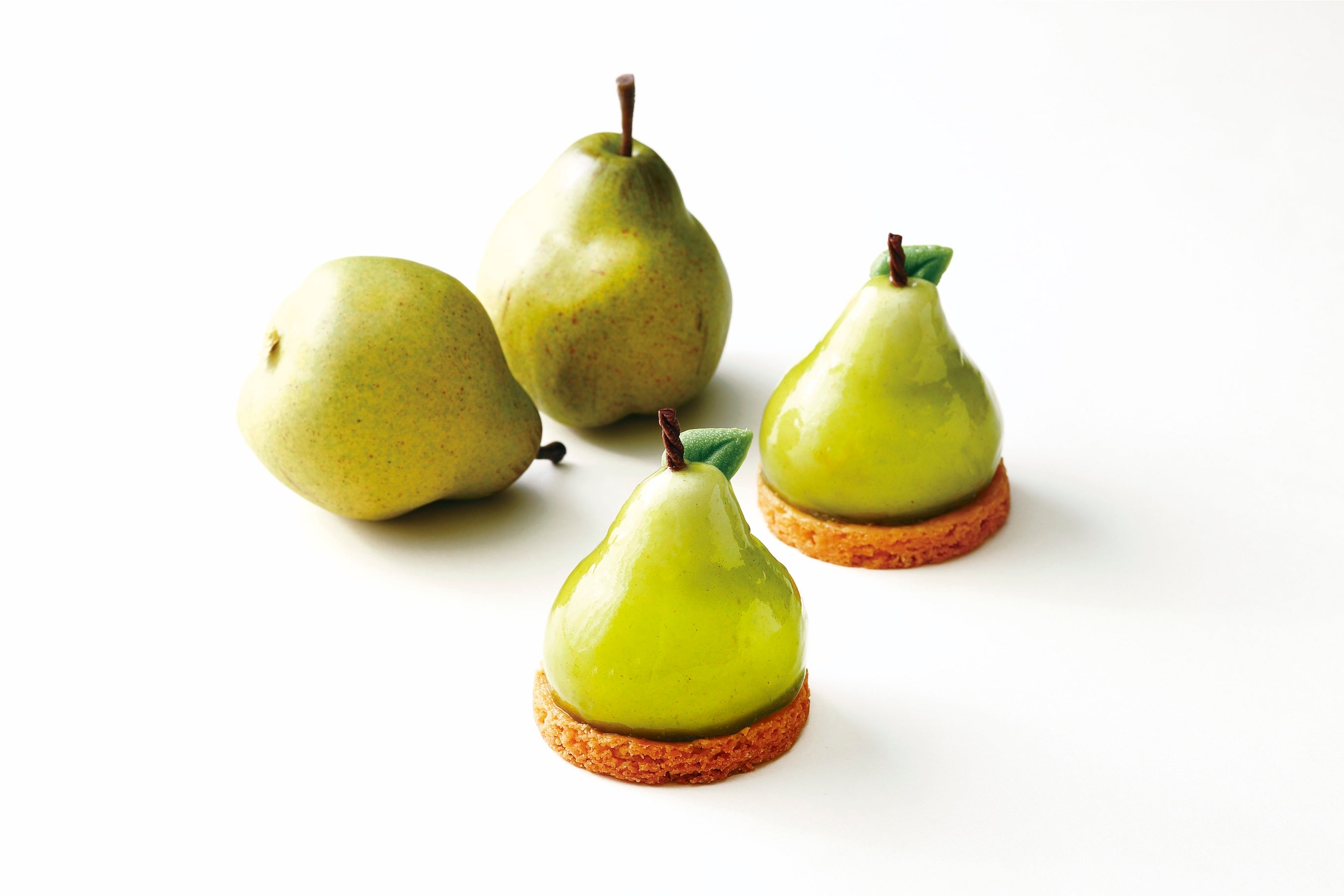 洋梨を模ったケーキの中には洋梨とショコラのムースと果肉入りソースがたっぷり。