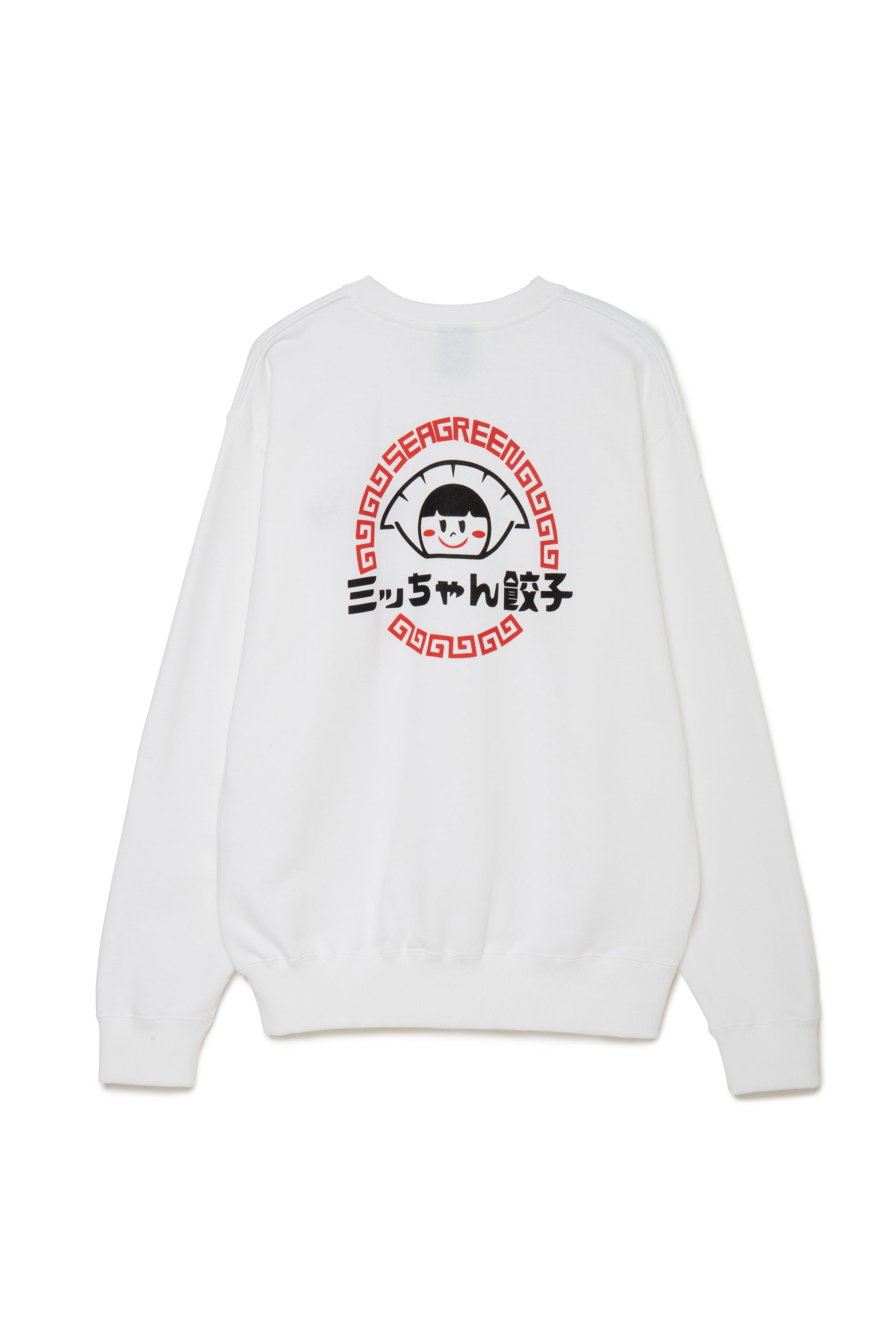 今回展開するアイテムではこのコラボレーションの為に、ミッちゃん餃子のグラフィック担当により書き下ろされたオリジナルグラフィックTシャツや、ミッちゃん餃子のアイコンとなるエンブレムにSeagreenのネームをそっと忍ばせフロントにはSeagreenの刺繍を施したオリジナルスウェットの2型を展開。