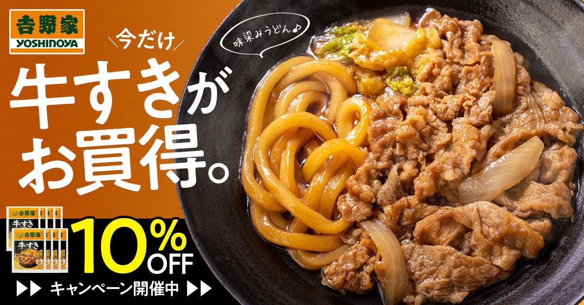 株式会社吉野家(本社:東京都中央区 代表取締役社長 河村泰貴、以下吉野家)は、10月19日(水)10時から11月14日(月)10時の期間、吉野家公式通販ショップにおいて通販仕様商品の「冷凍牛すき」や「冷凍国産牛すき」が10%オフ・送料無料となるキャンペーンを開始します。