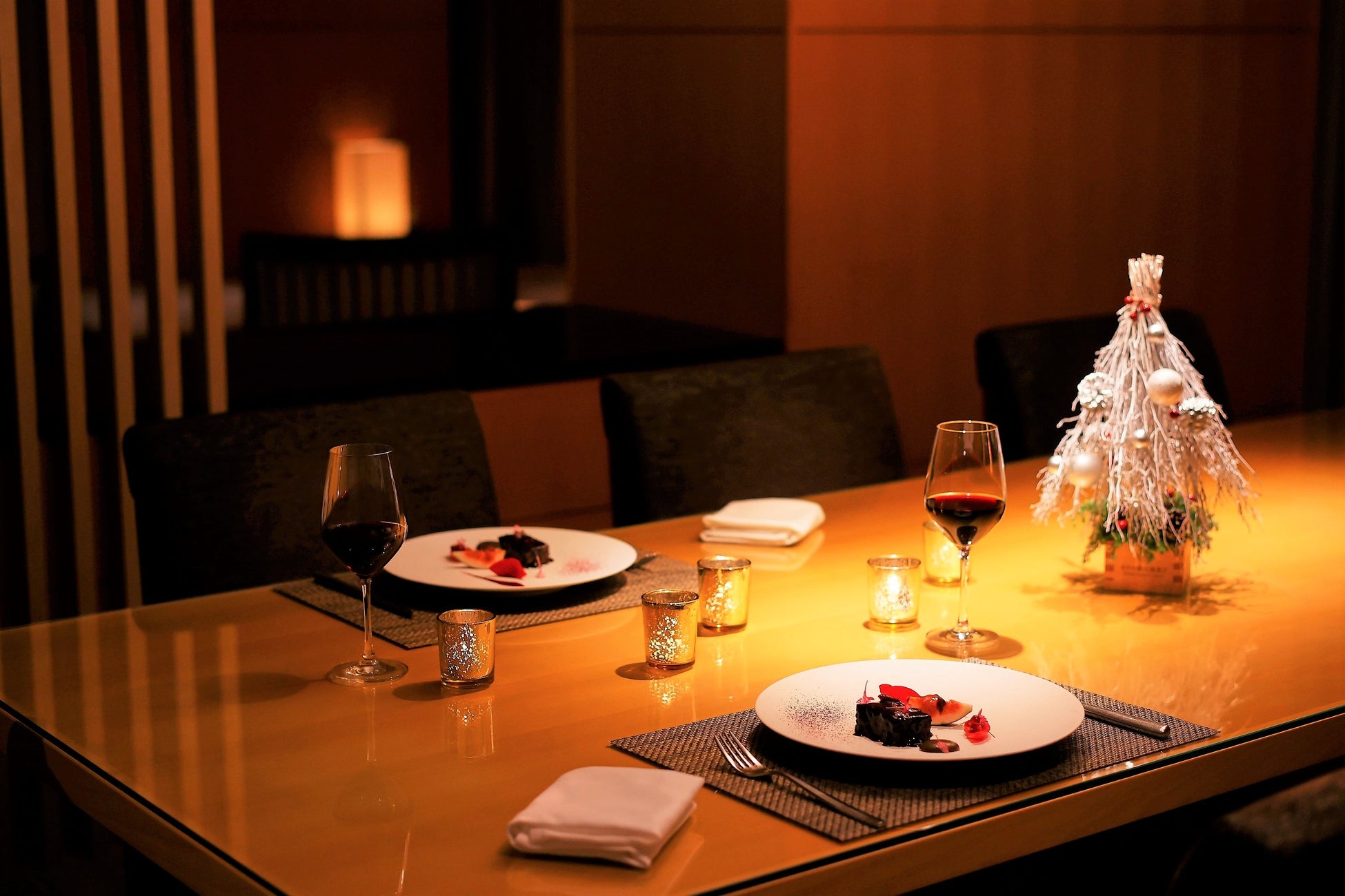 スイートルームで過ごす極上のクリスマス。お部屋へお届けするディナーでは、シェフが腕によりをかけたお料理を、揺らめくキャンドルが華やかに演出します。