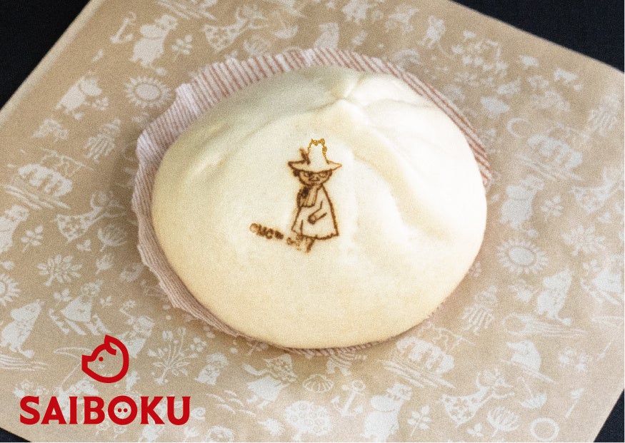「SAIBOKU」のゴールデンポークを使用した豚まんに、スナフキンのアートを入れました。