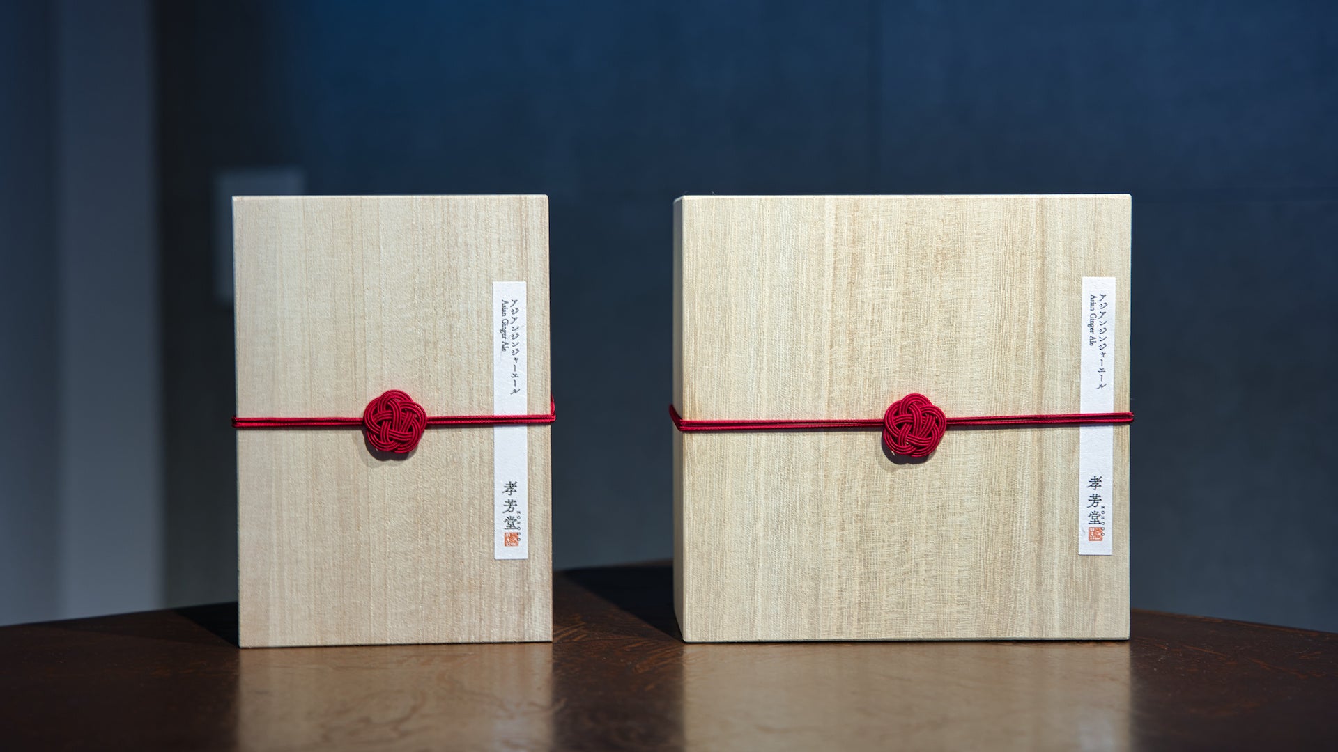 またパッケージは、古い薬瓶を想起させるデザインを採用。和紙柄にハンコや漢字を使うことで東アジアの世界観を表現しています。生姜は、親生姜から沢山の子ができ、種となった親生姜もまだ食用として使用できることから、「子宝に恵まれる」「親孝行」と言われる縁起物です。桐箱のギフトボックスも用意しているので贈答用にも最適です。