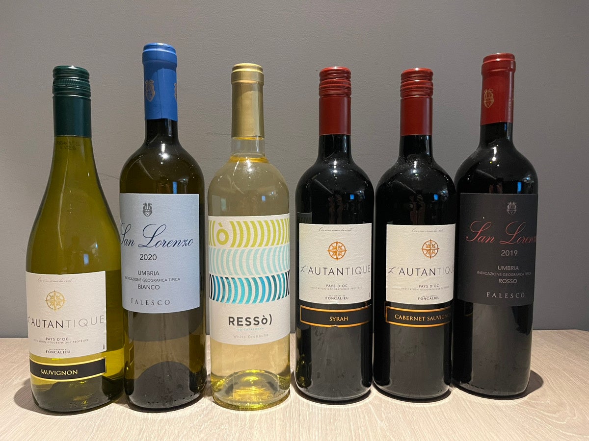 メニュー:グラスワイン赤と白 3種類ずつ