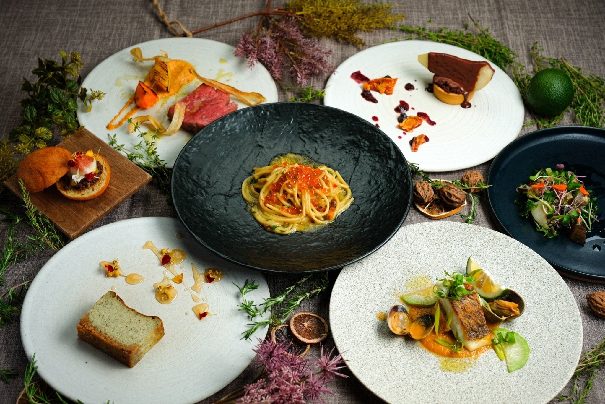 同⽇、半熟カヌレの発祥のイタリアンレストラン「AURUM+truffle」がboBのドライフラワー や花園のような世界観を 取り⼊れ、新しく『boB the garden Ginza』として⽣まれ変わります。(同フロアに両店舗が併設)