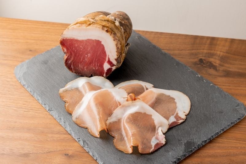 上質なロース肉を使い、ひき肉にせずそのままナチュラルケーシングで熟成してる<ロンツァ>。