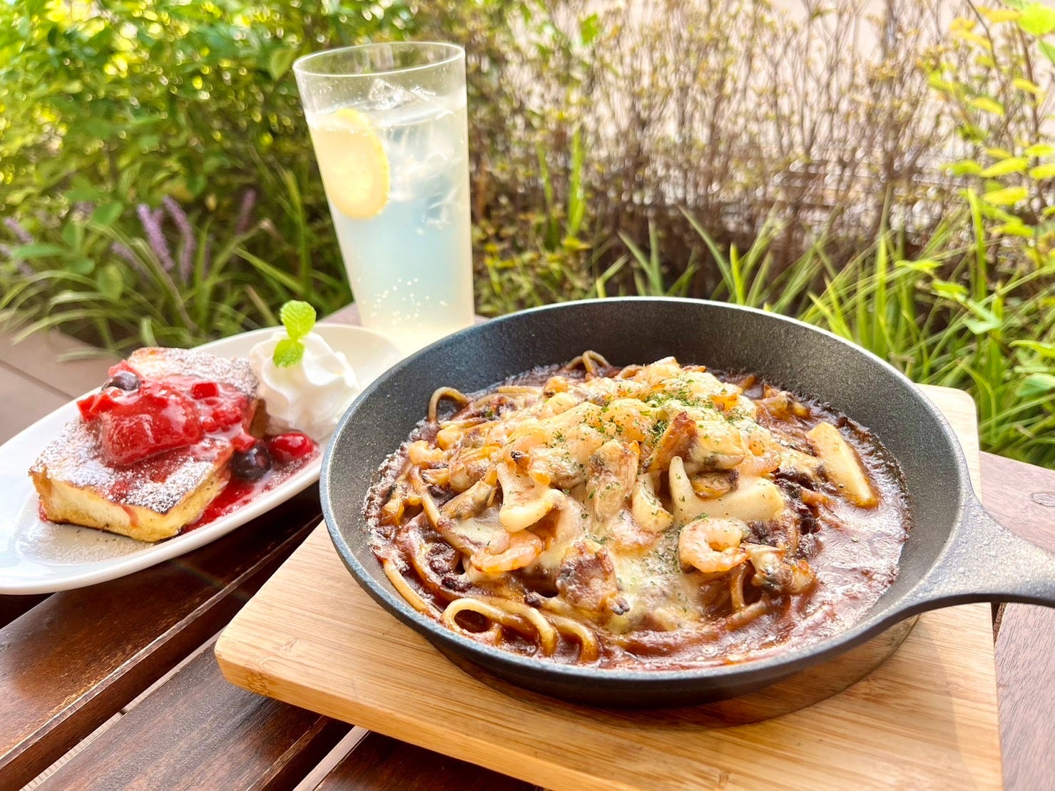 焼きシーフードカレーパスタ 1,400円(税込)フレンチトースト ドリンク付き