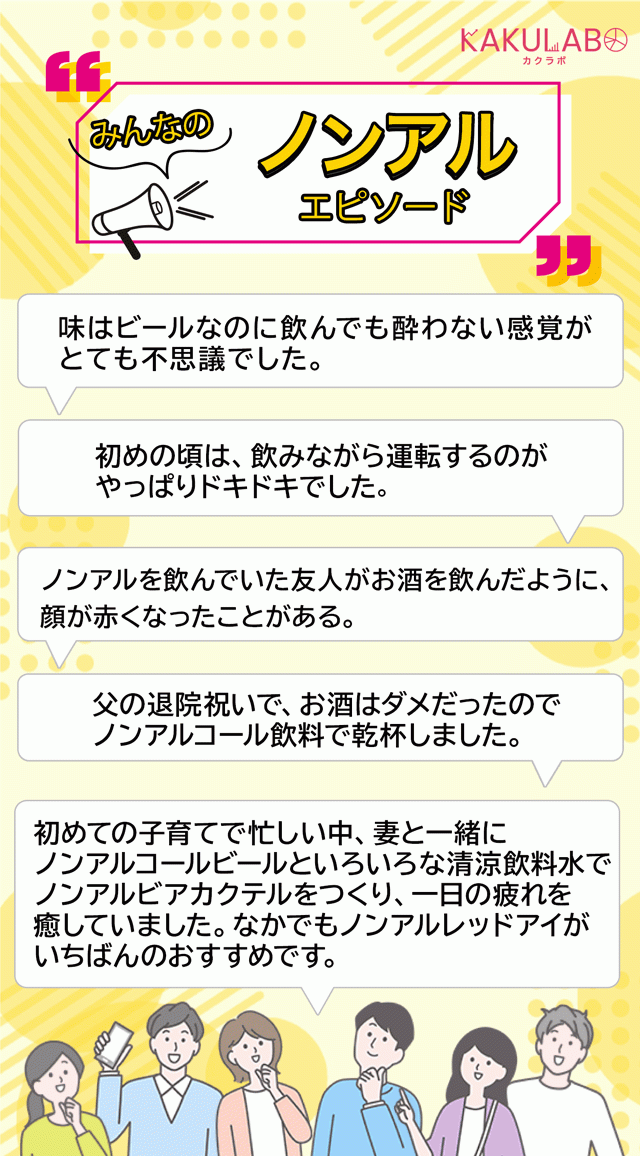 今回、ノンアルにまつわるエピソードを募ったところ、さまざまな声が寄せられました。