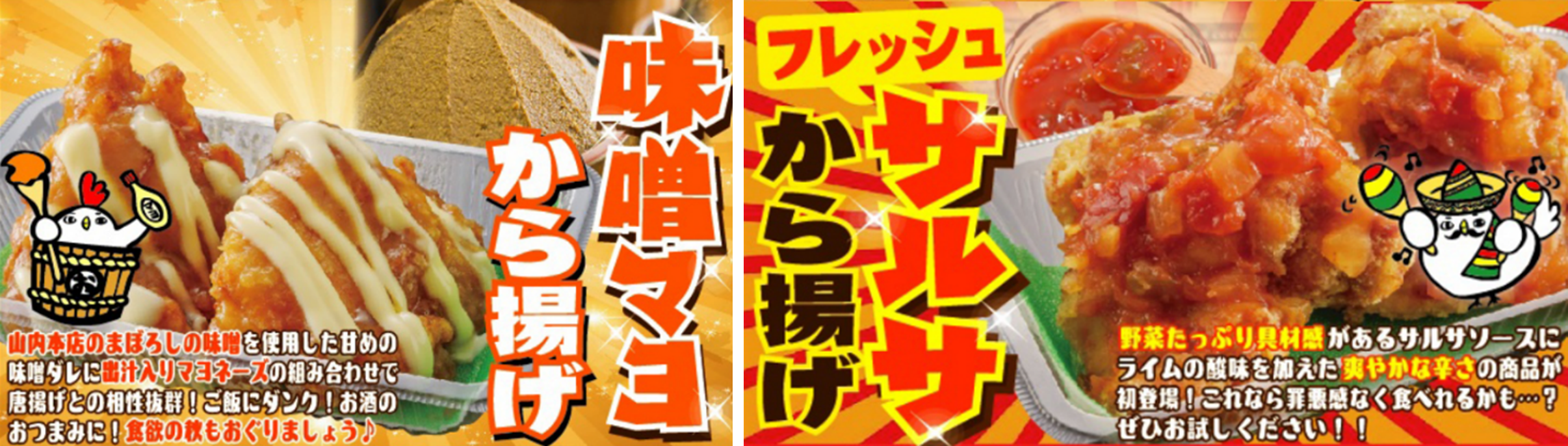 ■商 品 :「味噌マヨから揚げ」、「サルサから揚げ」