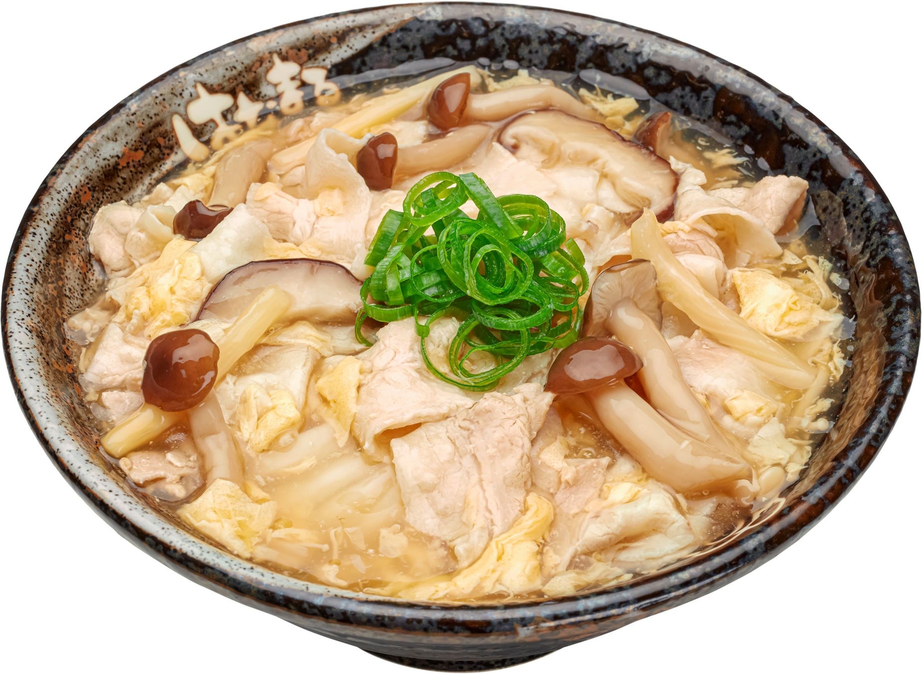 食物繊維豊富で異なる食感も味が楽しめる3種類のきのこ、かけ出汁を使ったやさしい味でとろっとろっの玉子あん、ふわっとした麺、この3つが一緒になり、やさしいおいしさが生まれます。