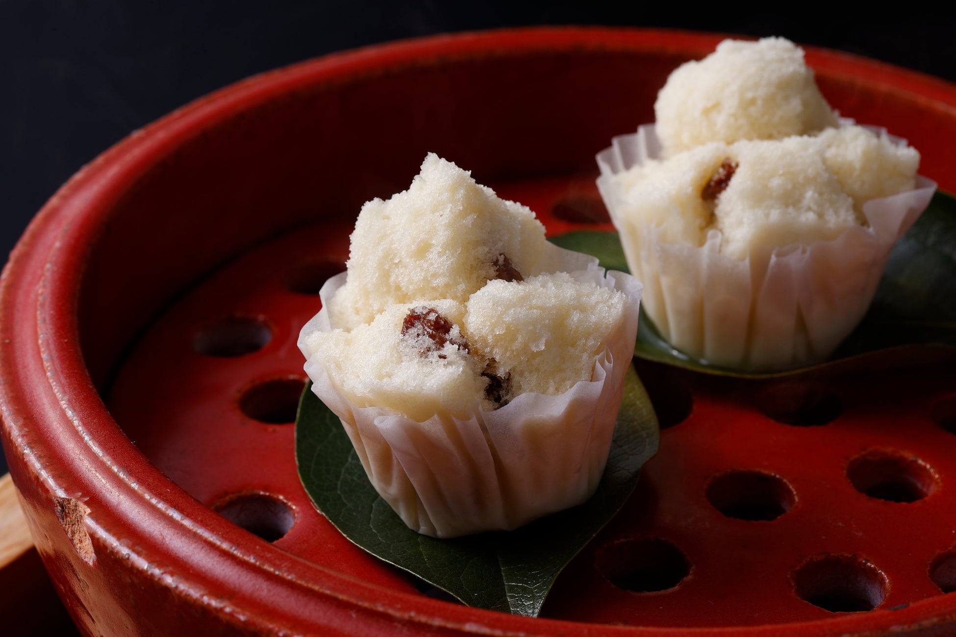 甘酒の蒸しパンは、神奈川県の瀬戸酒造から米麹を使用し、自家製の甘酒から作りました。ふんわりとした蒸しパンをあたたかい状態で召し上がっていただきます。薫り高い京都宇治抹茶と共にお楽しみください。