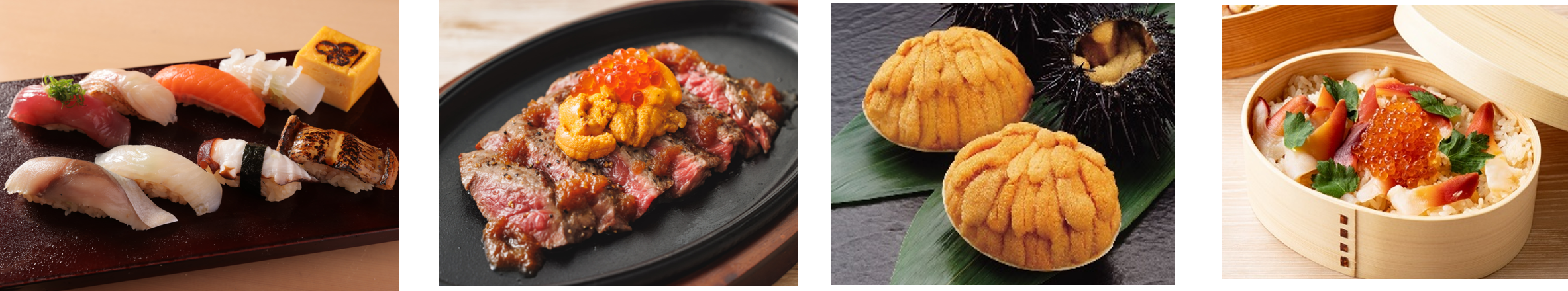 福島牛ステーキのウニとイクラのせ 画像:中央左