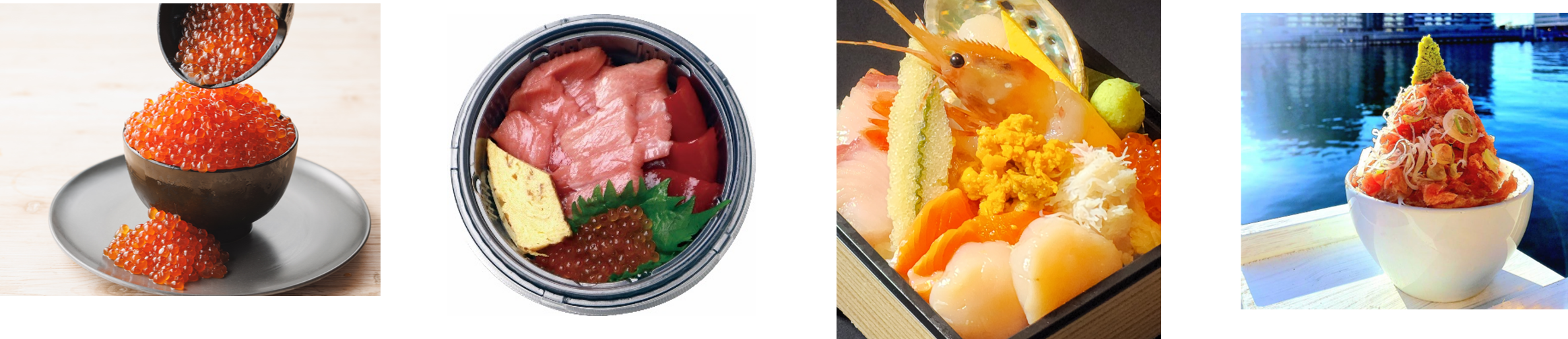 - 魚介グルメの王道!旬で新鮮な海鮮丼が勢ぞろい!