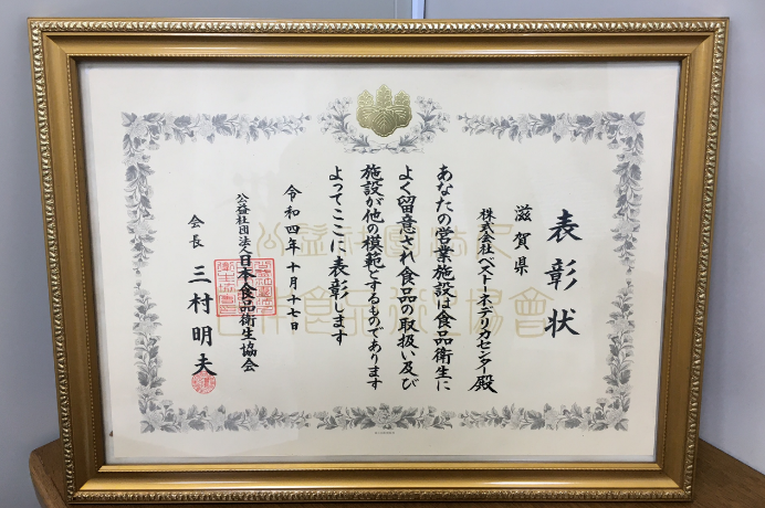 「食品衛生優良施設」表彰は、施設設備の衛生管理のほか、従業員の健康管理や食品衛生の教育が徹底されていることなど優秀な衛生管理を行っている事業所に贈られるものです。