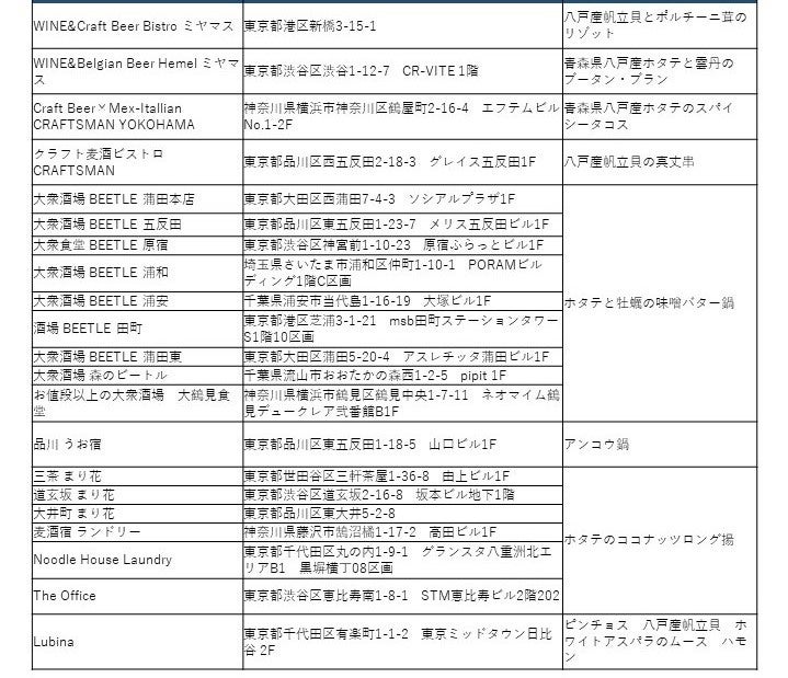 - 「三陸・常磐 うみうまフェア」第一弾 提供飲食店・メニュー一覧(東京・首都圏エリア)