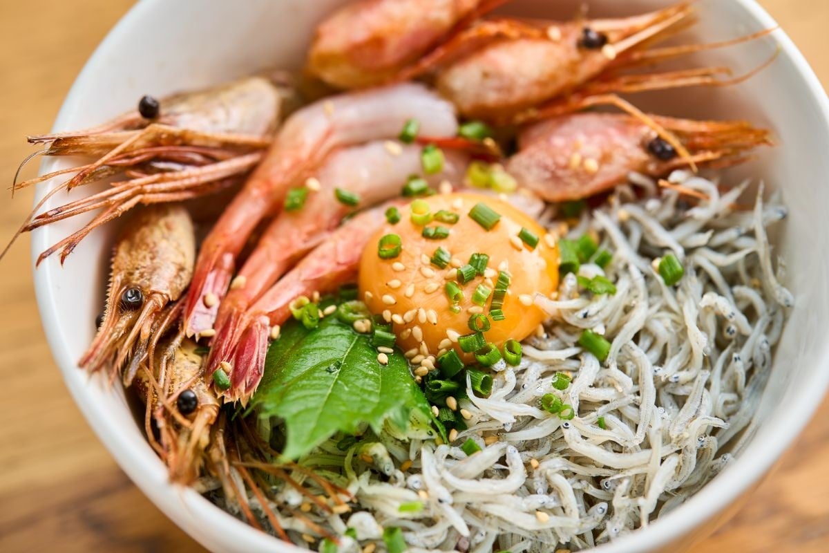しらすと有頭海老、甘海老をふんだんに使った贅沢な丼です。