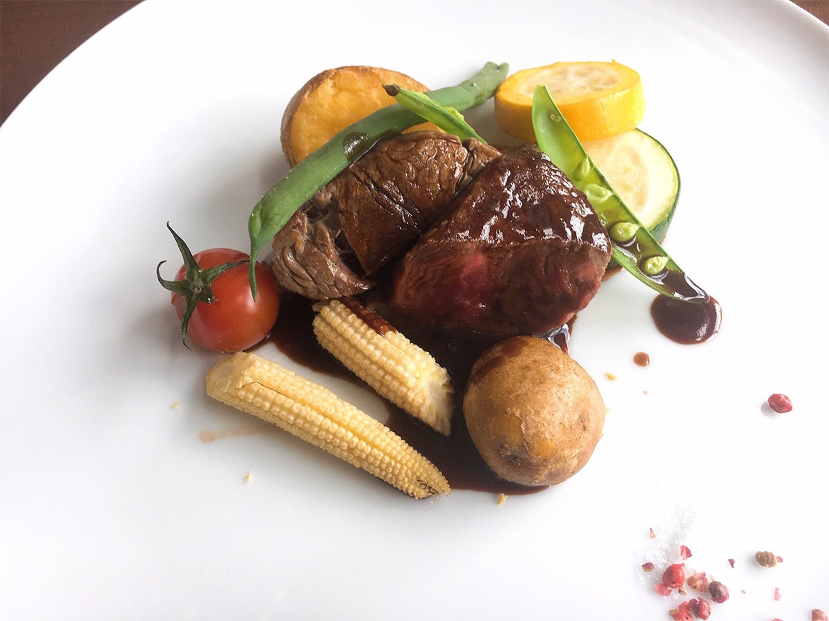 メインの「牛ヒレのポワレ」はシェフが心を込めてカーヴィングサービスさせて頂きます。