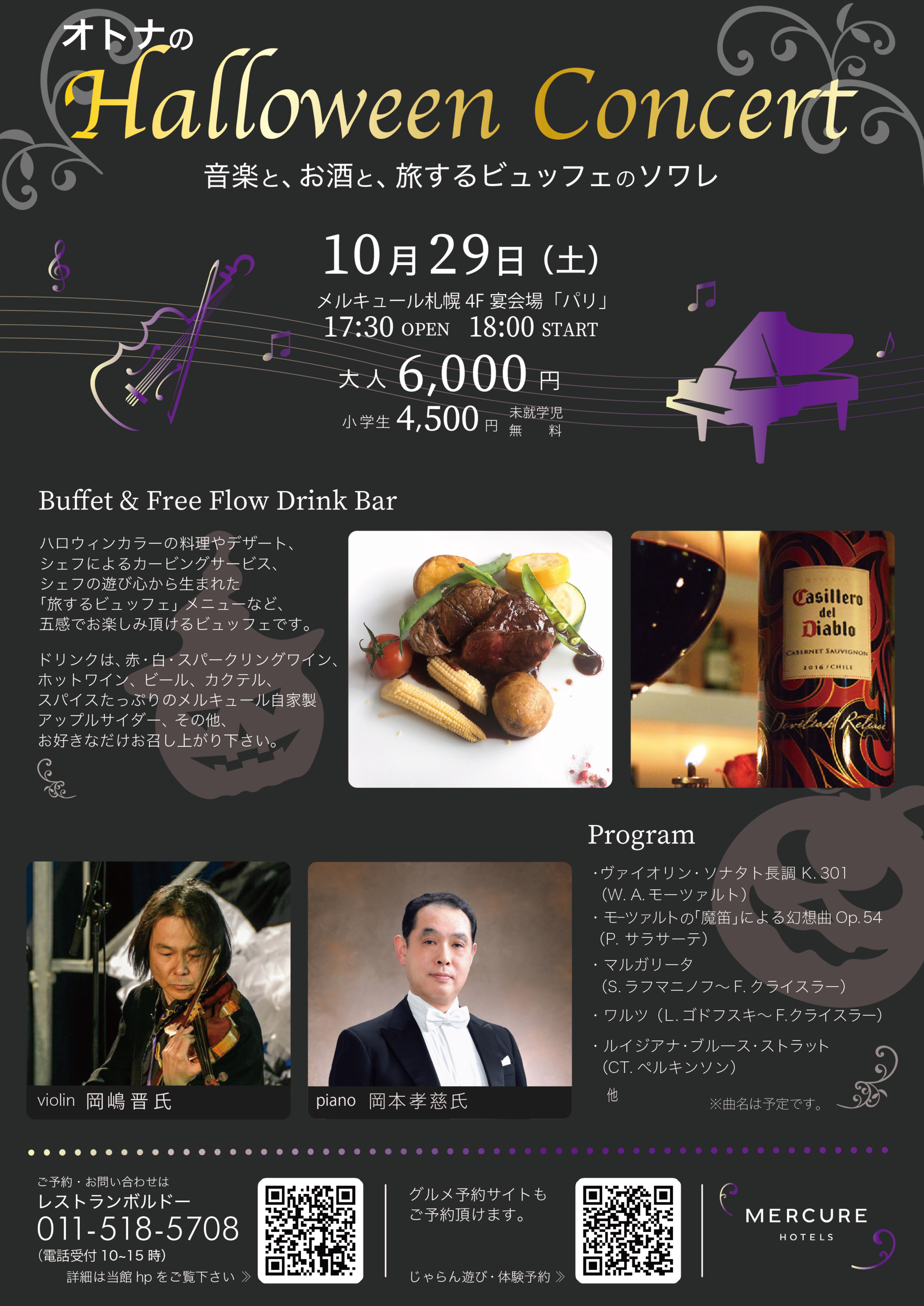 「大人が身近で音楽を楽しめる空間」を目指し、2月より音楽イベントを多数開催してきたメルキュール札幌(札幌市中央区南4条西2丁目2−4/カーセル クリストファー ホテル支配人)。2022年最後の音楽イベントは「オトナのHalloween Concert」。