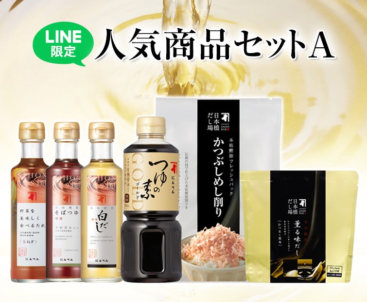 株式会社にんべん(東京都中央区、代表取締役社長 髙津伊兵衛)は、公式LINEアカウント「にんべん専門店」の3周年を記念して人気商品を詰め合わせた「LINE限定人気商品セット A」と「LINE限定人気商品セット B」を数量限定・特別価格にてLINE友だち限定で2022年10月21日(金 )より発売いたします。