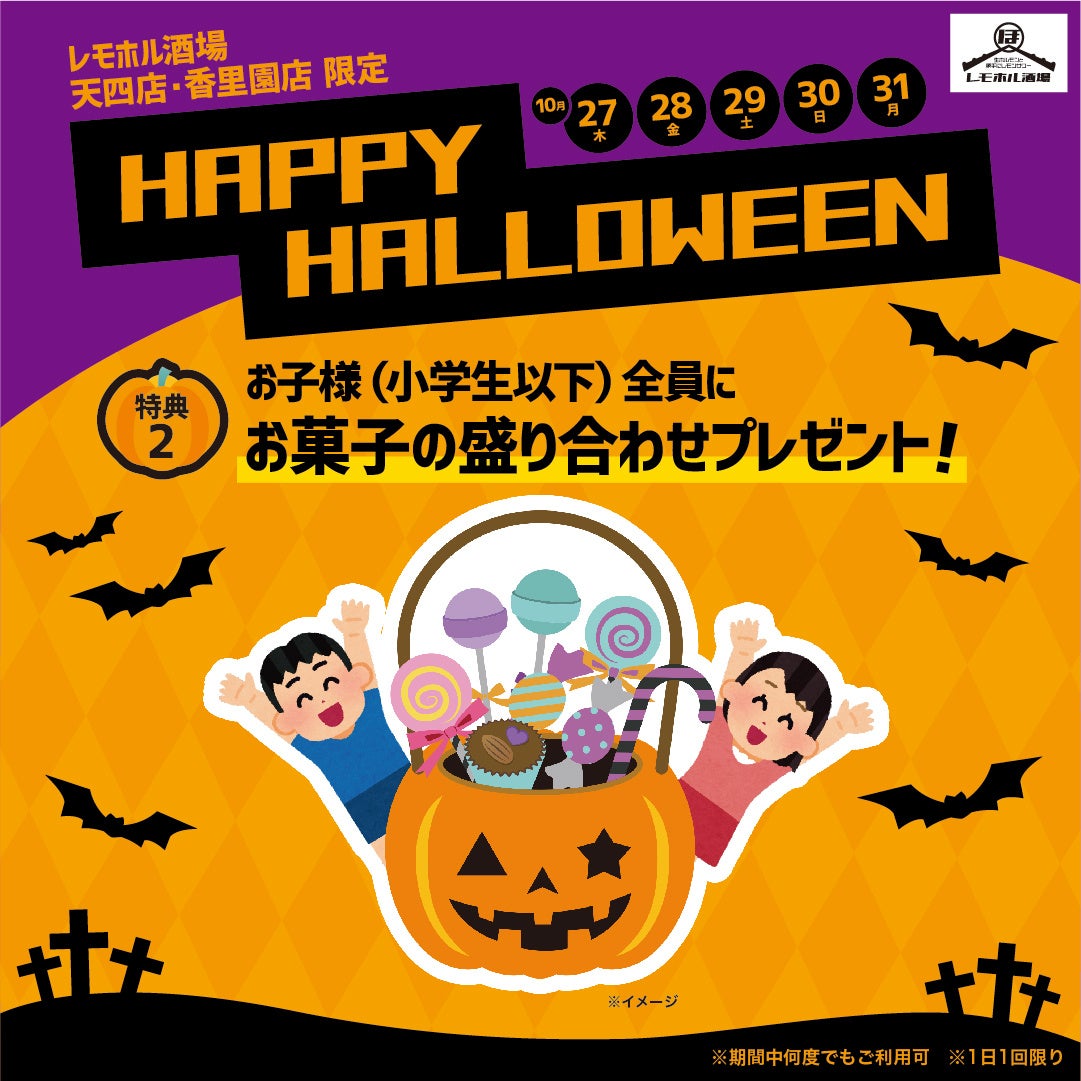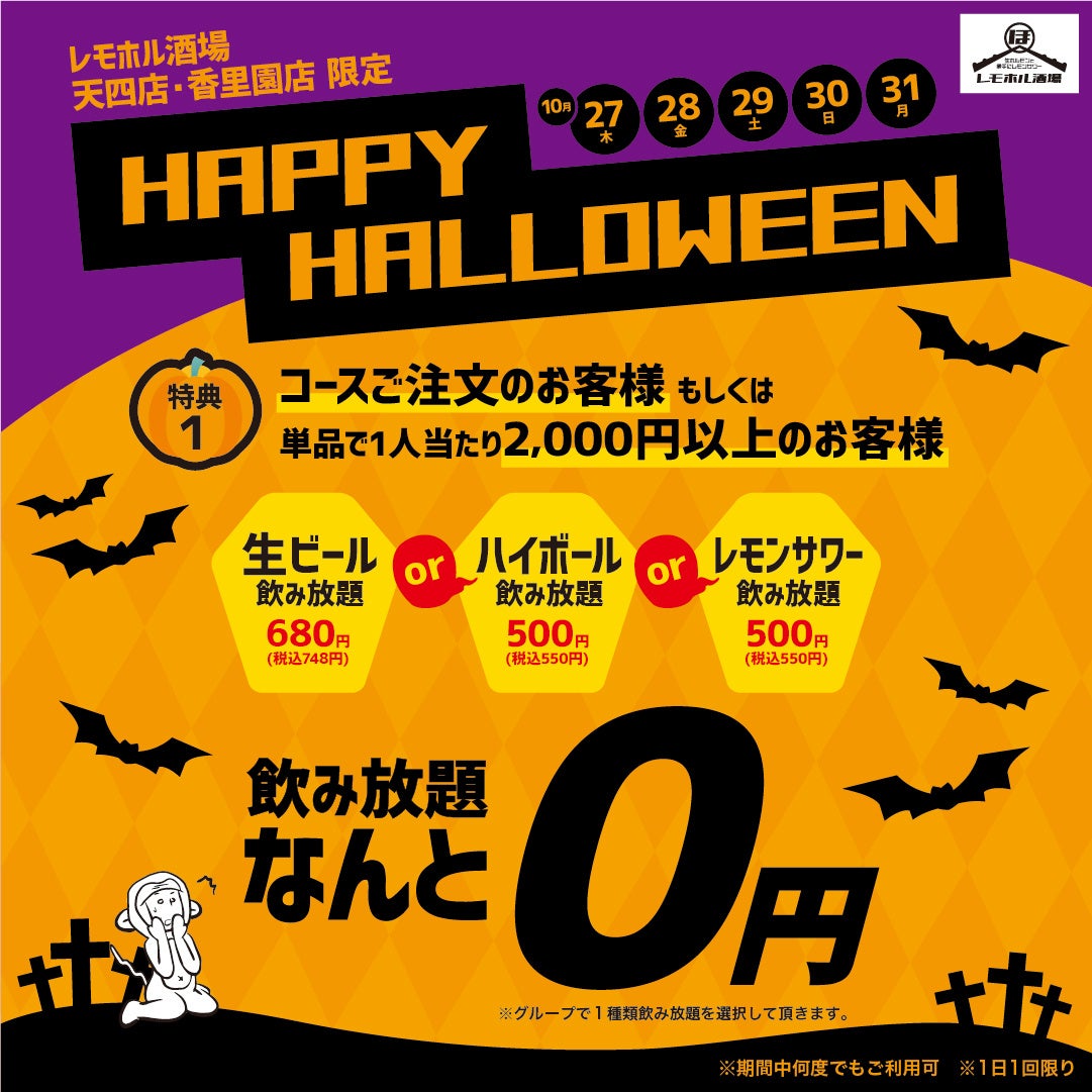 JR天満駅から徒歩3分の「レモホル酒場天四店」、京阪電車香里園駅から徒歩4分の「レモホル酒場香里園店」の2店舗にてこの度、店舗限定のキャンペーンを10/27~10/31のハロウィン期間に実施いたします!