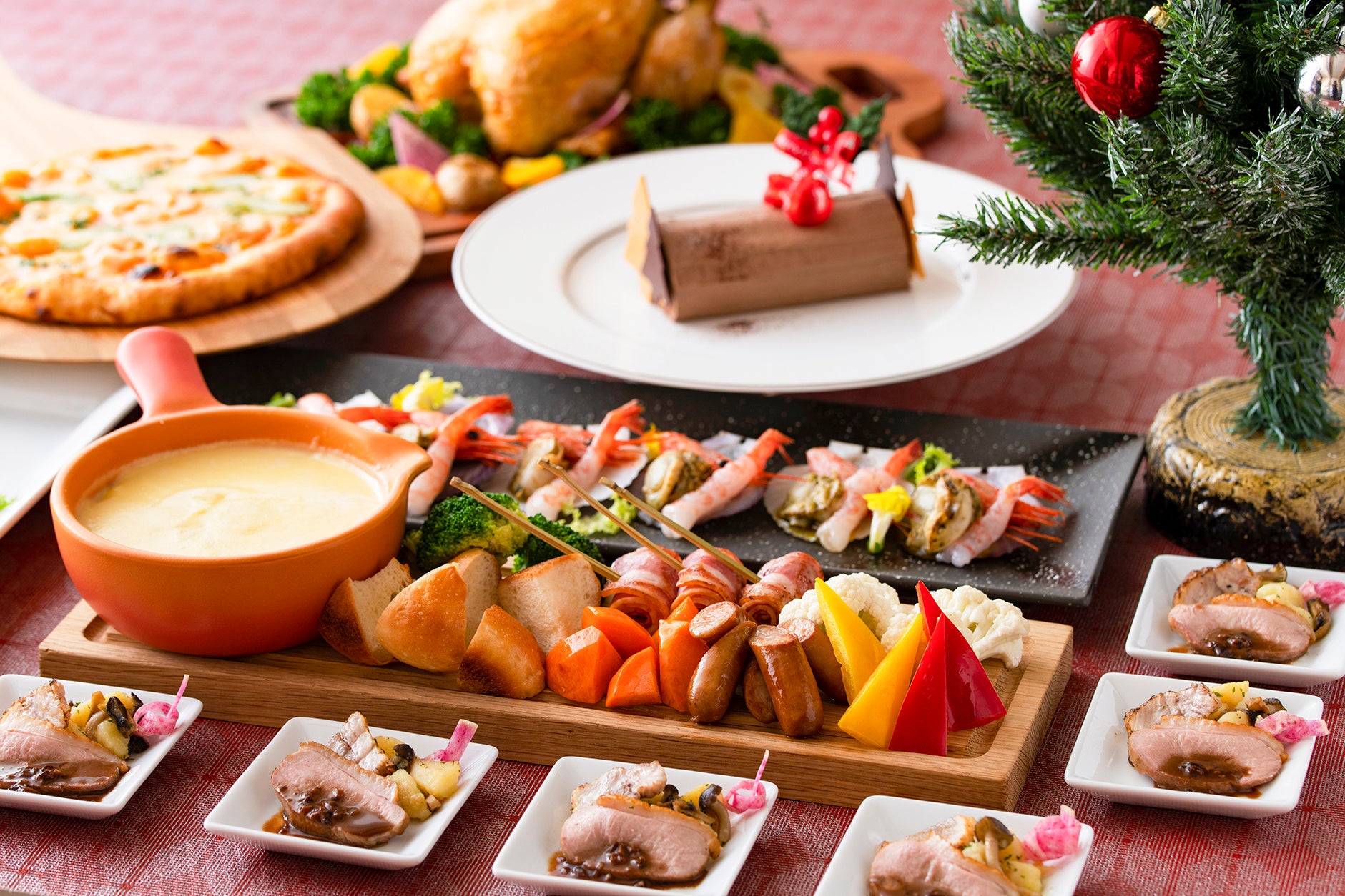 また、12月22日(木)~12月25日(日)は、クリスマスにさらに華を添えるメニューとして、チーズフォンデュや鴨と豚肉のトリュフソース、帆立稚貝のジェノベーゼ和え 甘海老添え、アメリケーヌソースピッツァなど、シェフおすすめの料理がラインナップ。ご利用シーンに合わせて選べるお得な3つのブッフェプランもご用意しています。