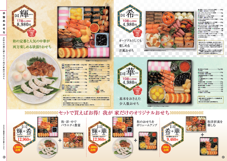 また、「手詰めおせち」では今年初めてセット販売での割引を実施。物価高の影響を受けやすい食材を多く利用するおせちですが、セット注文により500~1,000円お得にご購入いただけます。