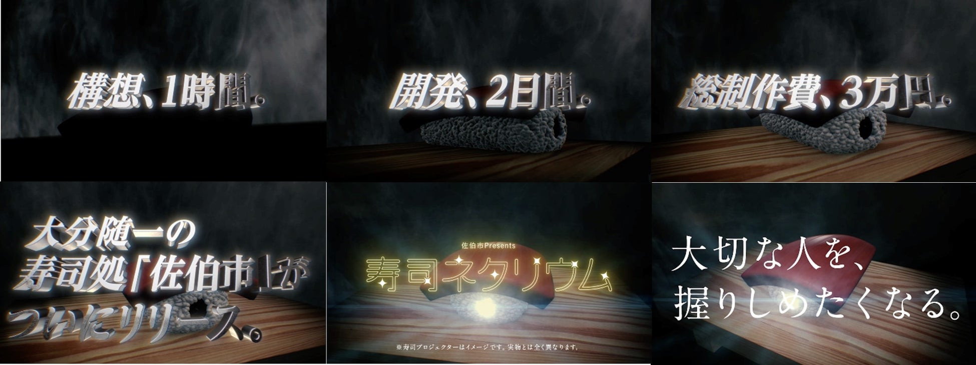 構想1時間、開発2日間、総制作費3万円…。そんな正直すぎる開発秘話を、大迫力の映像と壮大な音楽とともに発信します。寿司ネタリウムは別府でしか見られませんが、ティザー映像は佐伯市観光協会のYouTubeチャンネルで公開中です。