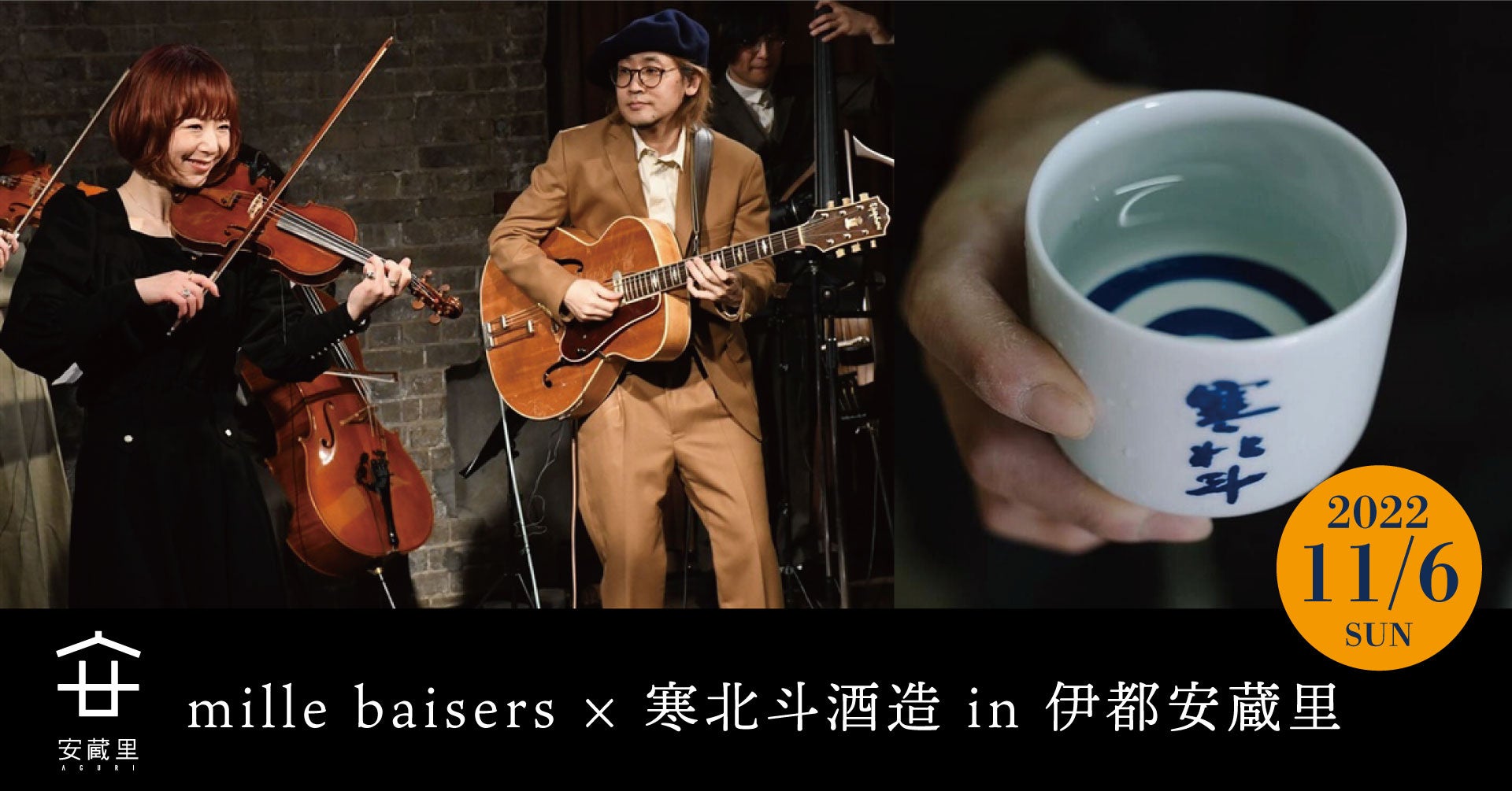 このたび、伊都安蔵里では、「ミルべゼ」「寒北斗酒造」とのトリプルコラボイベントとして、五感で酔いしれる音楽とお酒のライブイベントを11/6(日)に開催いたします。