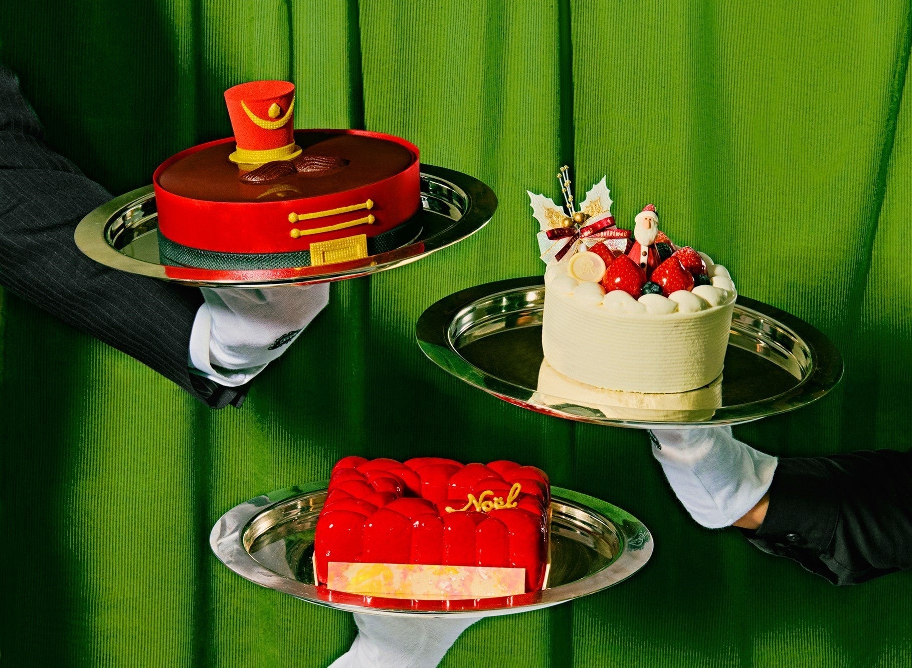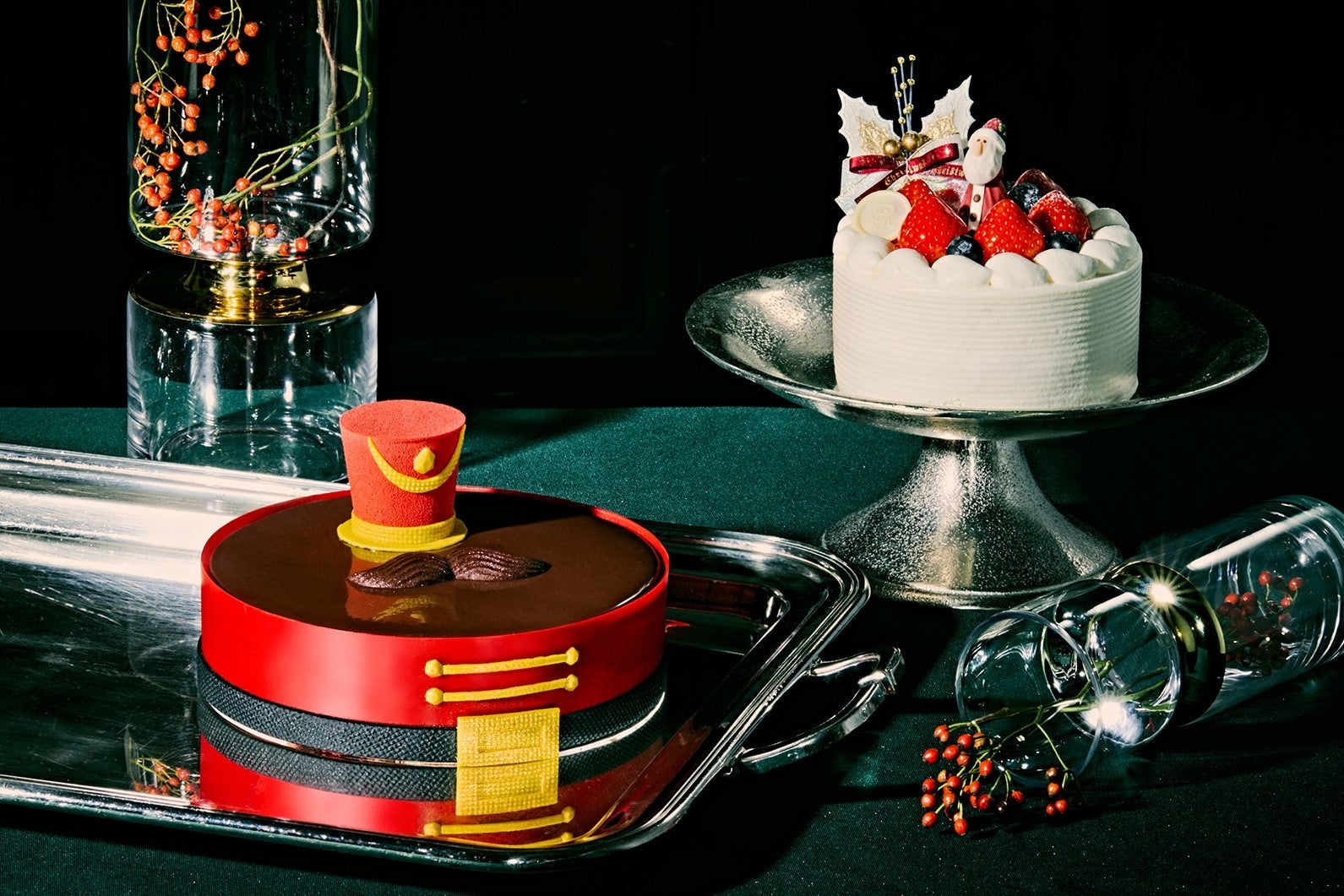 くちどけの良い生クリームとイチゴの定番「クリスマスショートケーキ」をはじめ、スタイリッシュなクリスマスリースをイメージした、艶やかなカシスムースの「クーロンヌ・ド・ノエル」、ナッツクラッカーをモチーフにしたブラウニー生地のケーキの全3種のケーキをご用意。