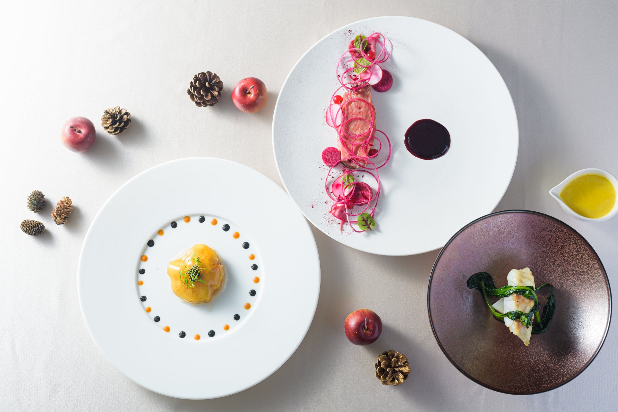 2022年のクリスマスは、三浦の地でたくましく育った野菜を中心に、近江鴨・オマール海老・三崎マグロ・国産牛ロースなど贅を尽くした特別メニューをご用意いたしました。刻一刻と変わる葉山の景色と共にお楽しみください。