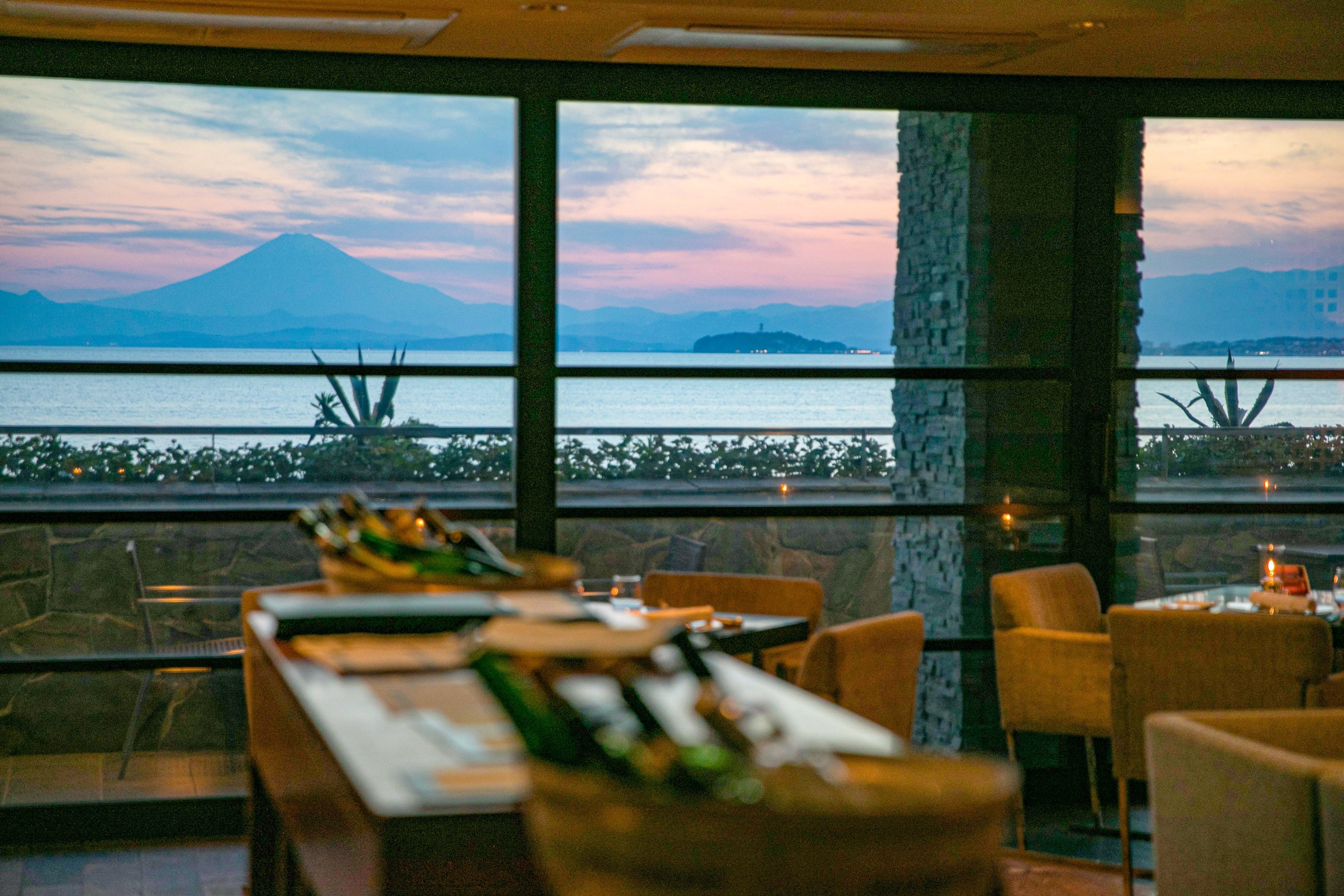 SCAPES THE SUITEは、森戸の広大な海と空、富士山や江の島を望む美しいロケーションが自慢のホテルです。うっとりするような眺望のレストランでは、葉山牛や三浦野菜など地産の食材を使用した逸品をお届けし、新鮮で風味豊かな葉山の旨味をご満喫いただけます。