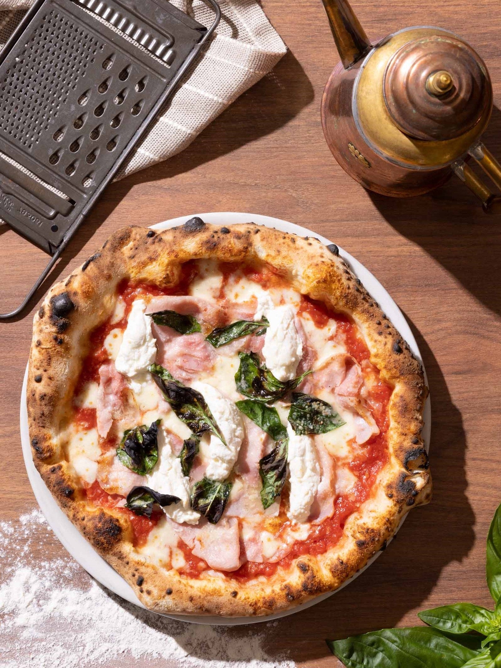 トマトソース、モッツァレラ、バジリコというシンプルなトッピングの「マルゲリータ」は高温の中、短時間で焼き上げる独自の触感と薪の香りが特徴です。