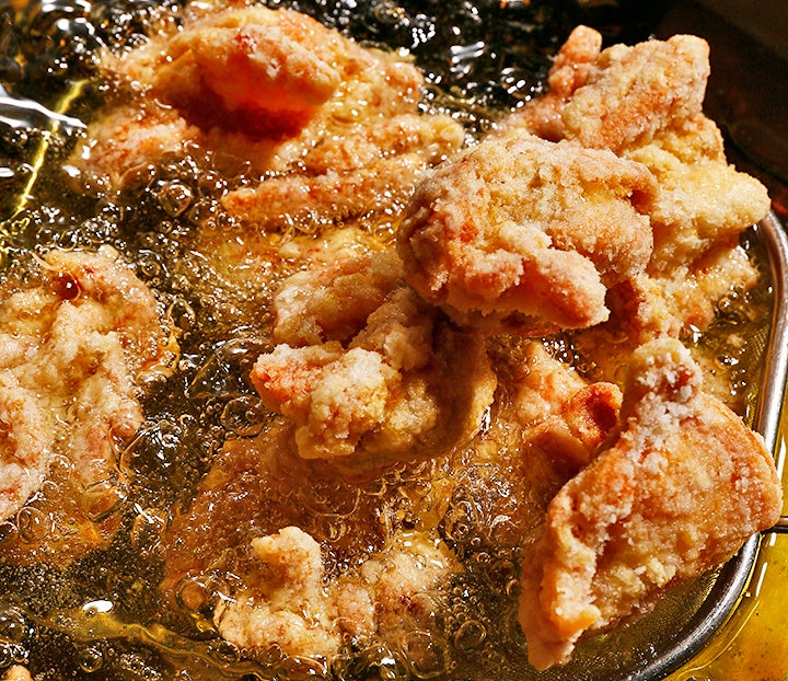 そしてもう⼀つの⾃慢は⼤分県のご当地グルメ「中津からあげ」です!このからあげは中津市にある⽼舗唐揚げ店で修業した当社常務がさらに改良した秘伝の漬けダレを使⽤。この漬けダレにひと晩以上鶏⾁を漬け込み注⽂を受けてからカラっと揚げる唐揚げはどこの唐揚げにも負けない⾃信を持っています!