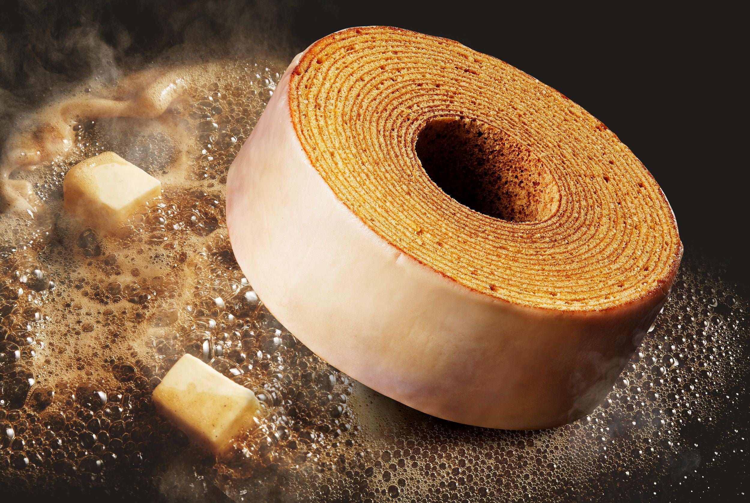 ◎リッチアーモンド&焦がしバターの濃厚テイストに、播州地卵の有精卵を宿したバウムクーヘン