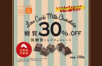 糖質30%オフの「低糖質ミルクチョコレート」は“チョコレートは好きだけど糖質が気になる…”という方にピッタリ!糖質は抑えても美味しさはそのまま、こだわりの商品です。