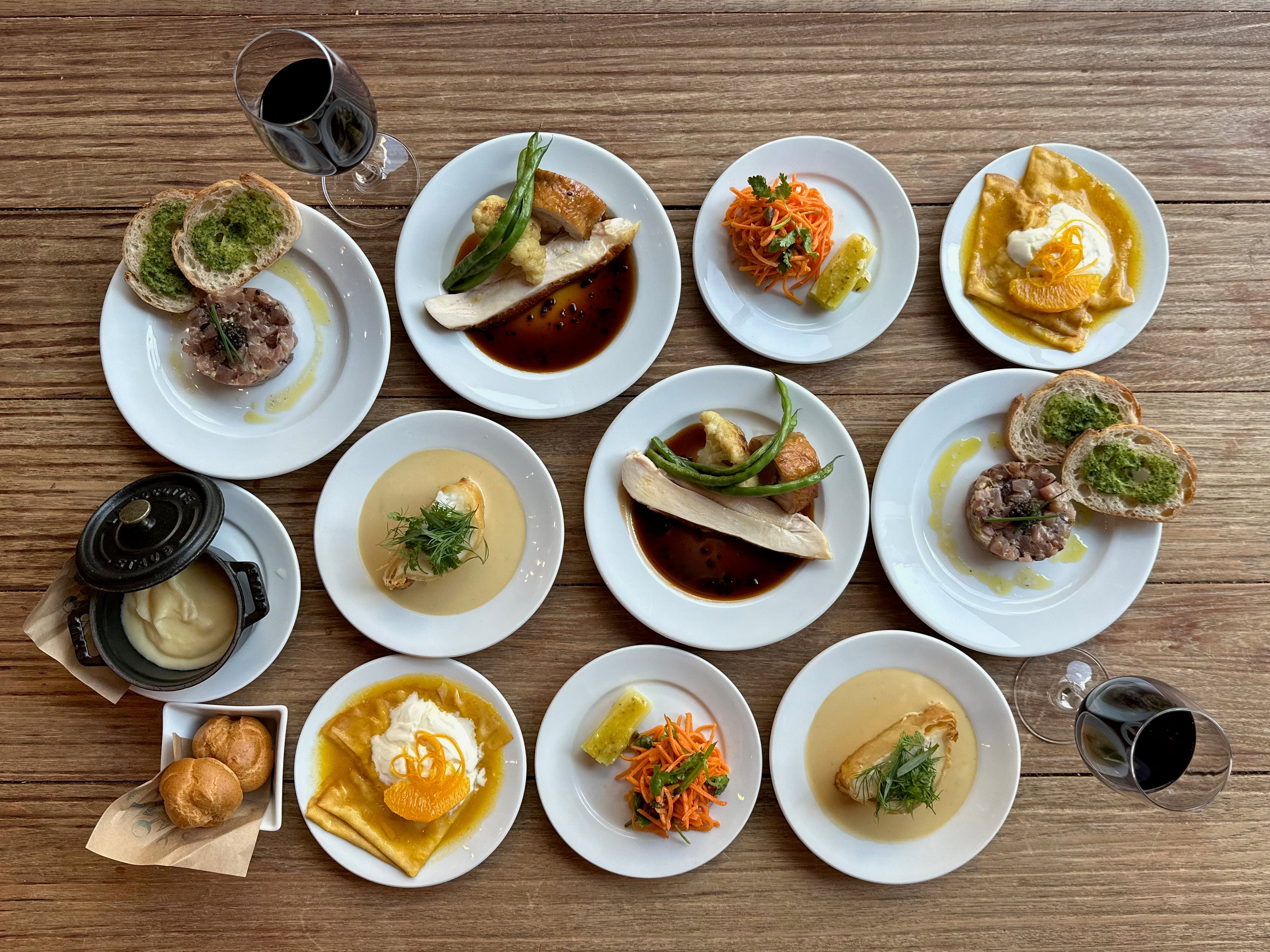 この度、Buvetteが創作したクリスマスコースは、あらゆる人達の気持ちを温かくするクリスマスの、気取らず朗らかなイベントを演出しながらもフォーマルな装いでお楽しみいただくべく、フルコーススタイルの内容でご用意しました。これら「Buvette」の“どこか懐かしくハートウォーミング”で“伝統的なフランスの料理”を、“小さなお皿に凝縮させるスタイルで提供”というコンセプトはそのままにプレゼンテーションし、お料理は個別に取り分けて提供します。また、当コースとの相性を考え、ソムリエが厳選したシャンパン、白、赤ワインを楽しめる「ワインペアリング」(4,100円・税込)もご用意しました。ぜひクリスマスコースと合わせ、お楽しみください。
