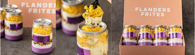 手に収まる映えパフェ。お芋・食感・彩りを掛け合わせて缶いっぱいに詰めこみました。食べ進めるごとに食感と味の違いが楽しめます。全体を混ぜて頂くとお芋のやさしい味がさらに引き立ちます。持ち歩いても崩れにくくアウトドアのデザートとしてもおすすめです。