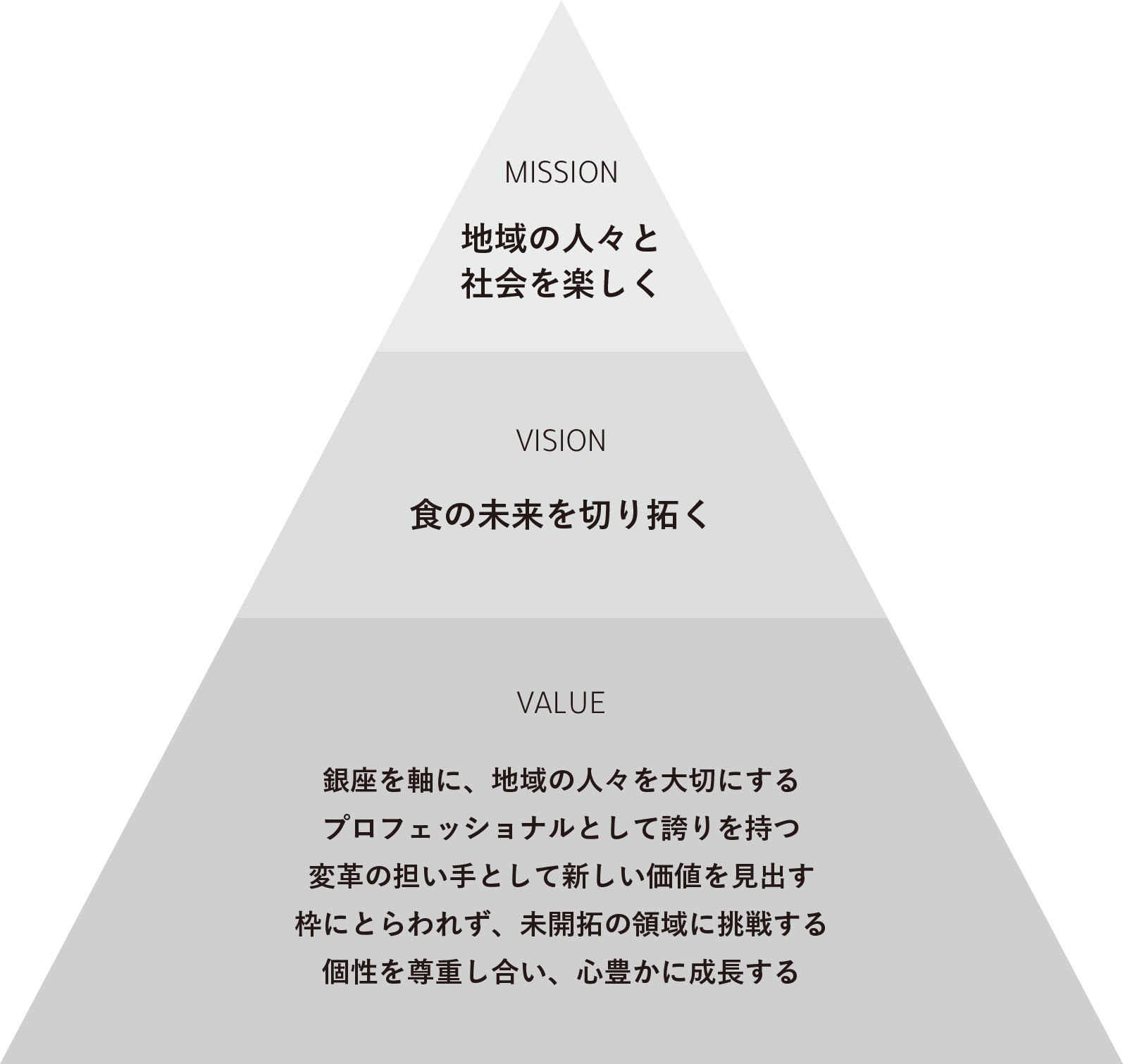 大東企業の飲食店ブランドは、銀座の街とともに成長して参りました。これからも地域のお客様に喜んでいただけるよう、料理人としての誇りを持ちながら日本の食文化の価値を高め、食文化を通して地域と世界の人々に貢献し、次の時代へあらゆる食文化のストーリーを紡いでいきます。