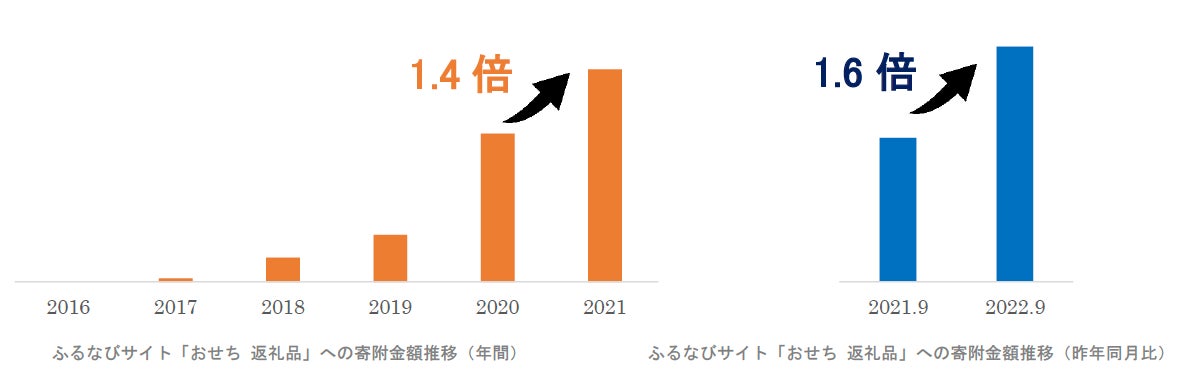 その人気と注目度は年々高まっており、ふるなびにおいて、昨年の「おせち返礼品」への寄附金額は、前年対比で約1.4倍 。昨年同月比で比べても1.6倍にもなっており、ふるさと納税でおせちを予約する人が増えている事が伺えます。