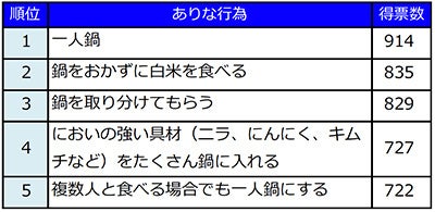「一人鍋」がすっかり定着。一方嫌いな行為の1位は?