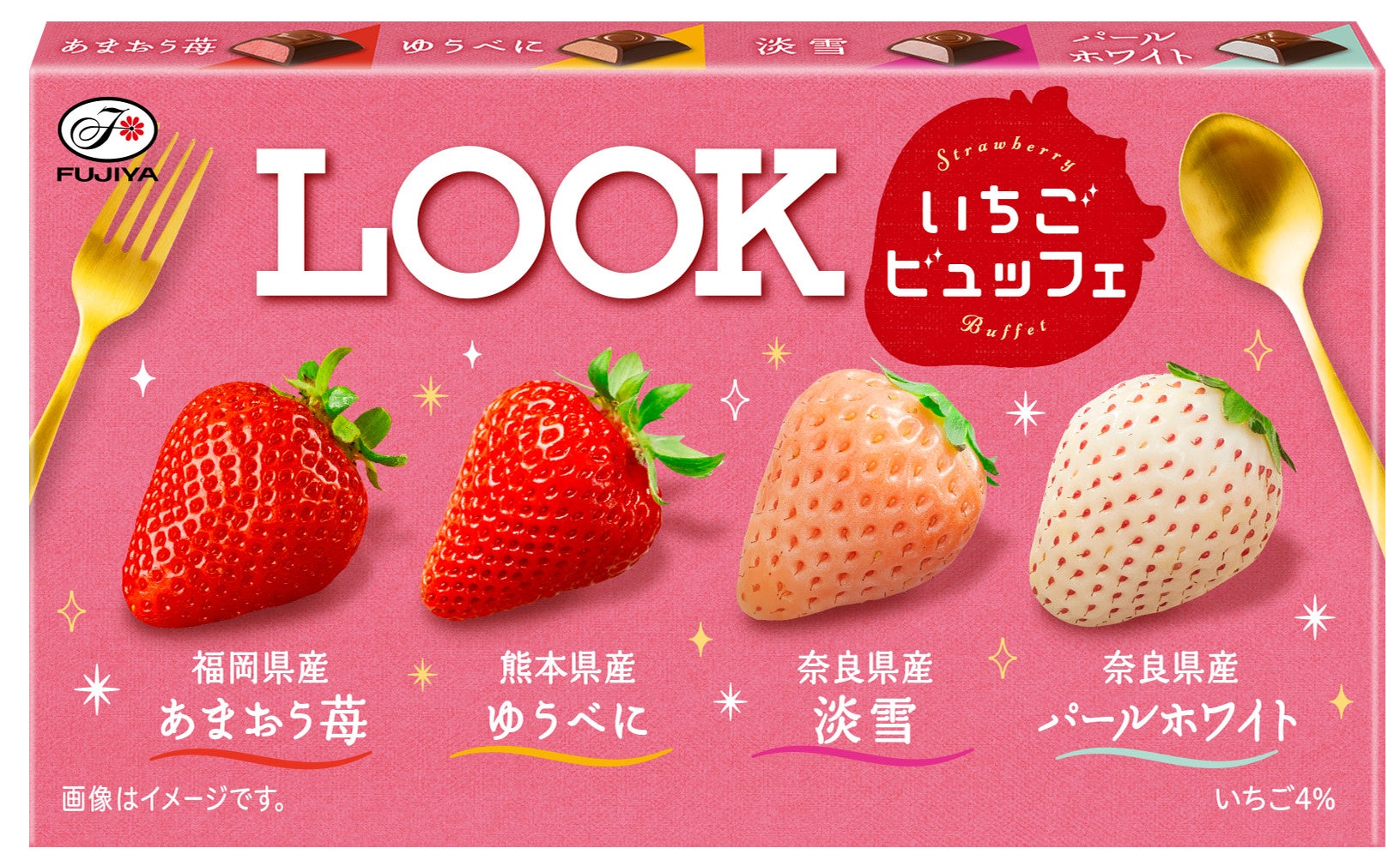 福岡県産「あまおう苺」、熊本県産「ゆうべに」、奈良県産「淡雪」、奈良県産「パールホワイト」の4種のブランド苺をそれぞれ使用したクリームをミルクチョコレートで包んだ、食べくらべて楽しめるルック