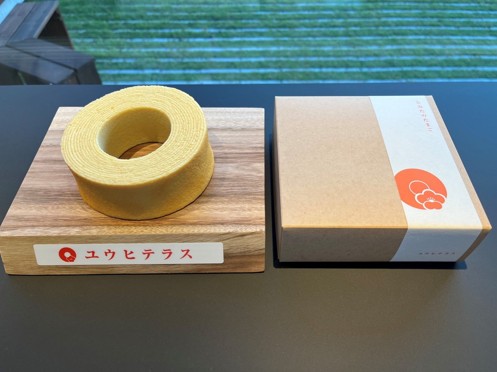 2022年7月よりカフェ「ユウヒテラス」をプレオープン。サイズや形状などの理由で規格外となり出荷できないものの、品質には問題のない新鮮なたまごを使いバウムクーヘンを製造・販売しています。
