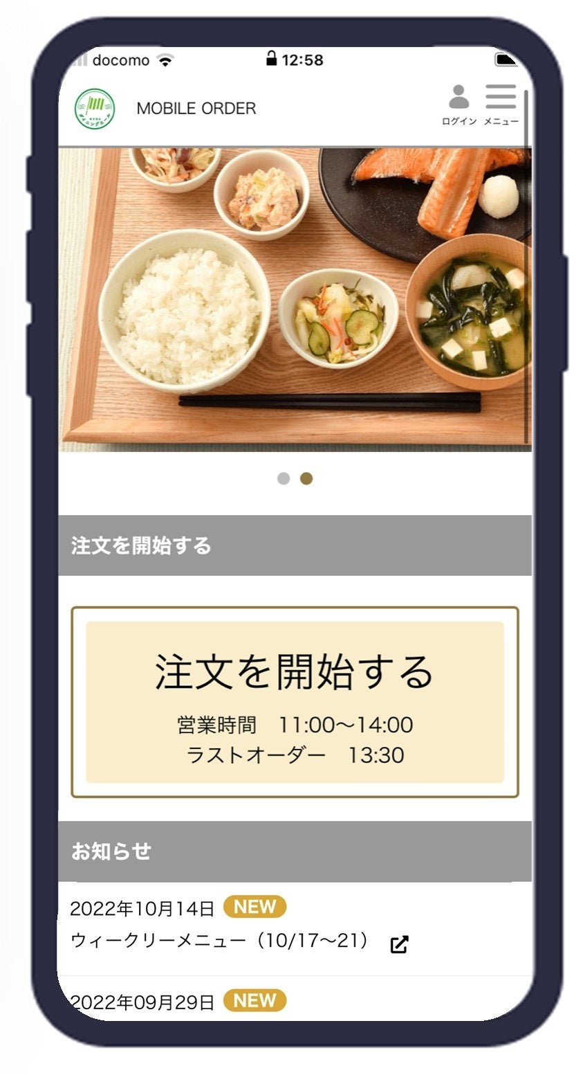 このたび事業所給食の新規運営受託を機にスマートフォンから「事前注文」「事前決済」が出来る、いわゆるモバイルオーダーシステムを導入、本格運用を開始しましたのでお知らせいたします。店頭キャッシュレス券売機やPOSなどと連携した、当該モバイルオーダーシステムの社員食堂への導入は他に類を見ないものです。*1