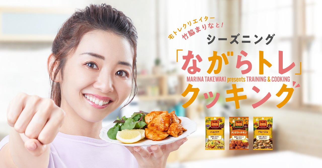 エスビー食品株式会社は、宅トレクリエイター 竹脇まりなさんを起用した「『ながらトレ』クッキングプロモーション」において、特設サイトを10月25日より公開します。少材料・短時間かつ2~3工程で料理が完成する「SPICE&HERBシーズニング」のコンセプトと、自宅で楽しくできるフィットネス「宅トレ」を掛け合わせ、「おいしさと健康」を皆様にお届けします。