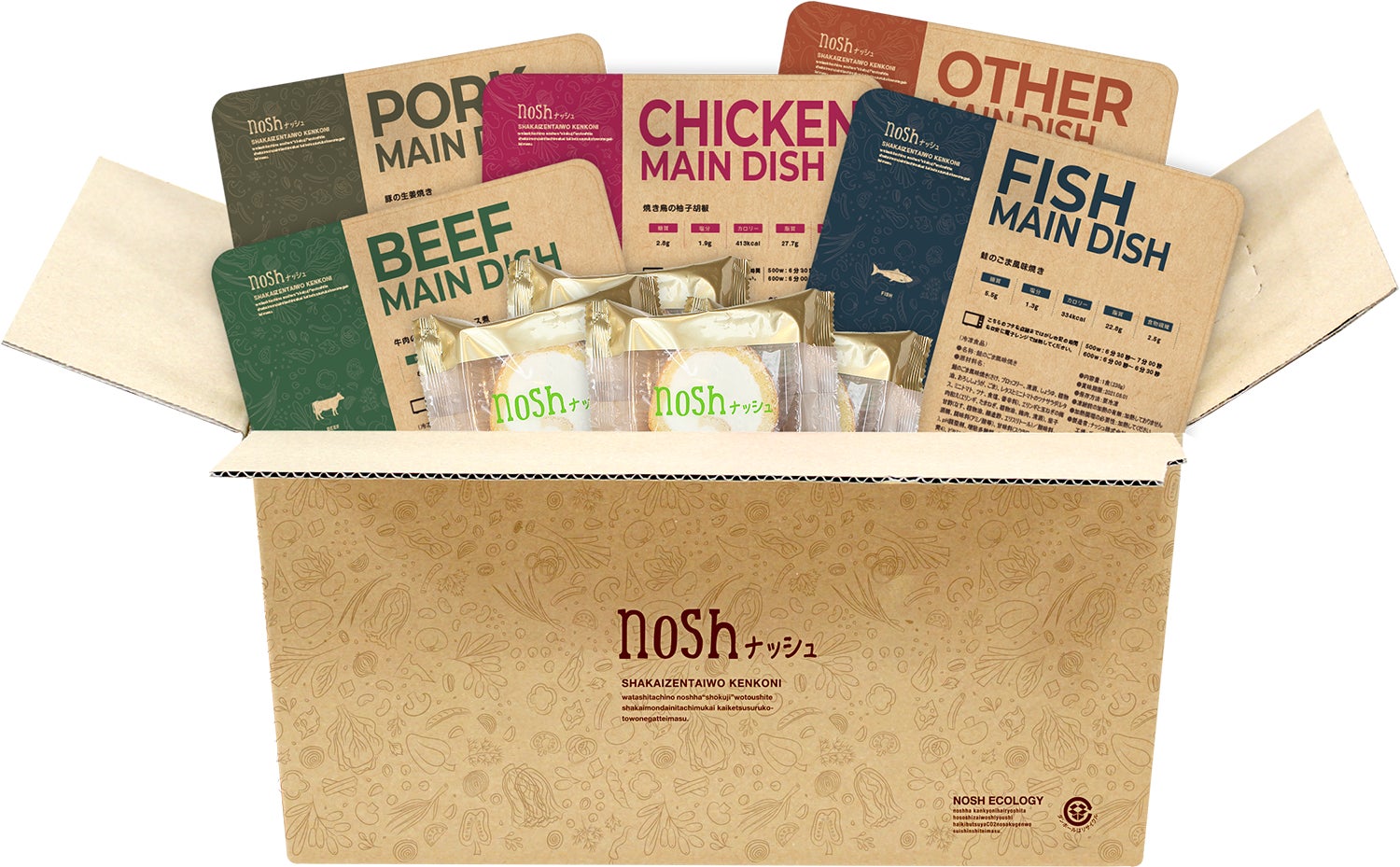 「社会全体を健康に。」を理念とする当社は、商品の企画・製造・販売までを一貫して自社で行っています。 多忙な毎日の中で健康的な食事の準備をすることは簡単ではありません。そうした中で、手軽に栄養管理ができる「nosh」は、自宅に常備される“国民食”となることを目指しています。自社専属シェフと管理栄養士が開発したすべての商品は糖質30g以下、塩分2.5g以下の栄養価を満たし、常時60品以上の商品は継続的にご満足いただけるよう、毎週3商品の新アイテムを投入しています。