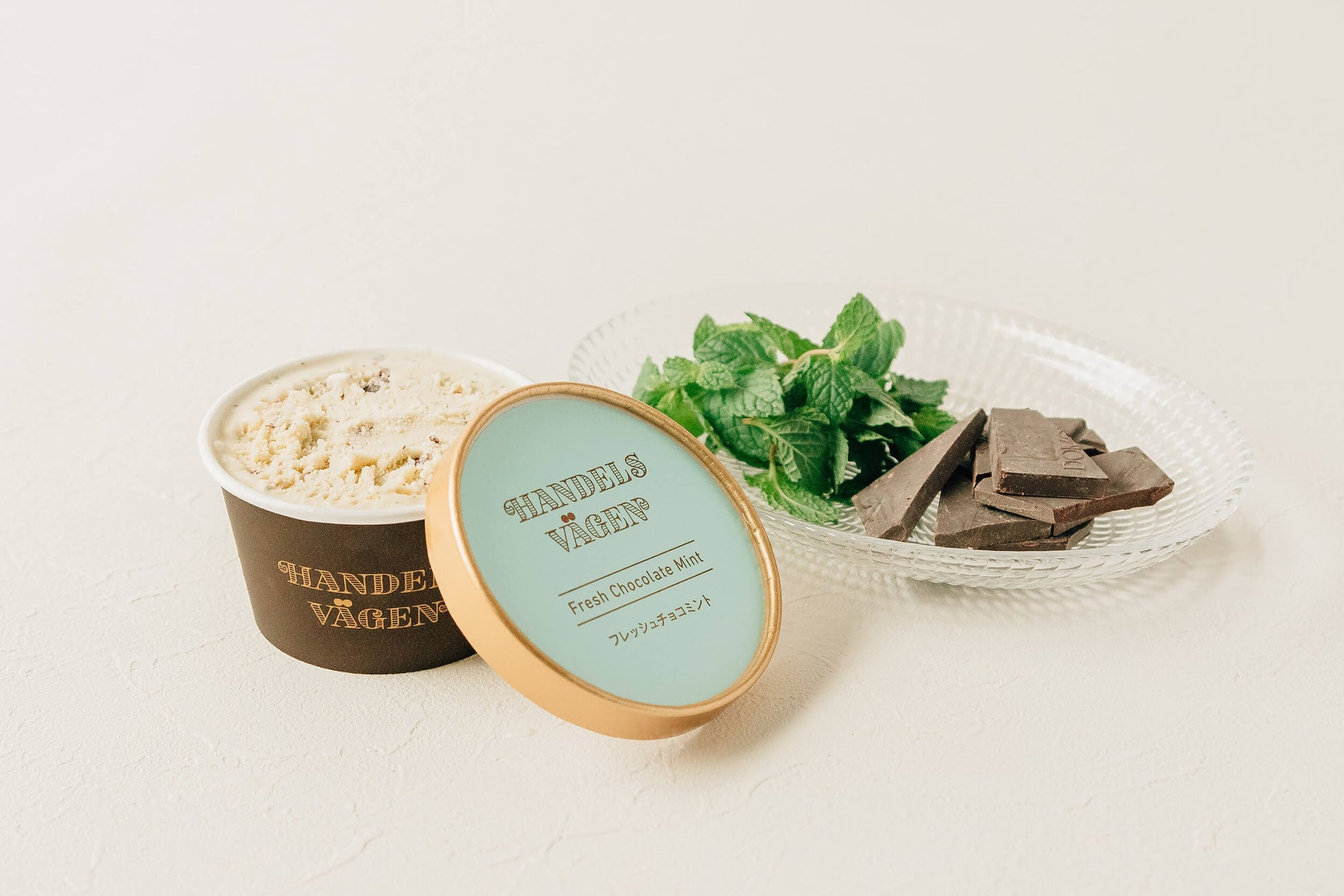 チョコミントと聞くと、ミントグリーンの色や芳香剤のような香りをイメージする方も多いと思いますが、それとは全く別物の、国産の生のスペアミント、北海道産の生乳アイスクリーム、フランスWEISS社の乳化剤無添加チョコレートだけで作る、着色料や香料を一切使用していない「自然素材だけでできた白いチョコミント」です。