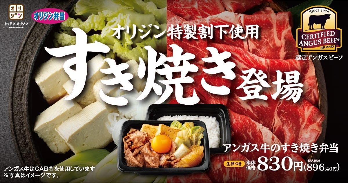 オリジン特製の割下で仕立てた「アンガス牛のすき焼き弁当」が期間限定で登場。